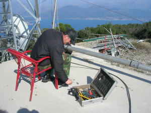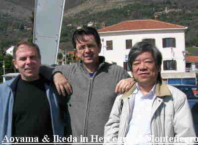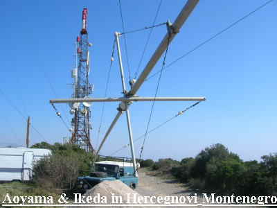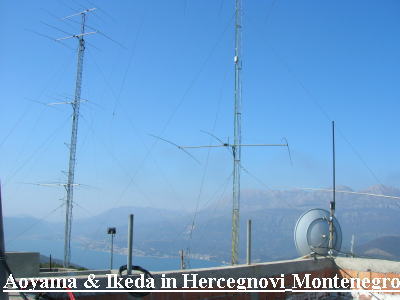 | 前の頁に戻る 2007年3月12日(つづき) そうこうしているうちに、午前11時半となり、ホテルプラザのフロントに戻る。 数分後、ランコ氏がフロントに現れた。 ロシアのモスクワ南部から来たというセルゲイ氏もいる。ランコ氏は、「これから自分の車に取り替えてもらい、湾の対岸の600mほどの山の山頂にある無線設備とアンテナを見て貰いたい。75mバンドの大型アンテナを設計し、つくったがそれを山頂からさらに50mの鉄塔に上げるので見て欲しい」と言い出した。 無線キチガイの私にとって願ってもないことだ。 また対岸の600mの山頂からモンテネグロの景観を撮影できる絶好のチャンスである。池田さんにもあらかじめこのようなことになる可能性を伝えていたので、ランコの四輪駆動車に乗り換え、対岸の山頂を目指すことになった。 ![]() ヘルセグ・ノビ、コトルと行き先(YT6A)の位置関係 運転は地元のランコ氏なので安心。結構スピードをだしている! ほぼ昨日コトールに行ったときと同じ道を行く。その後、コトール湾側をまわらず、何と無線施設がある山にショートカットするフェリーにのる。 一台の車に4人が乗っているのでわずか600円程度で対岸に短時間に到着。 ![]() 左からセルゲイ(ロシア)、ランコ(モンテネグロ)、貞一(日本)の アマチュア無線で知り合った友人 ![]() ショートカットルートとしてフェリーがあった ![]() 黒い山がコトル湾に落ちるすばらしい景観を撮影する池田 対岸到着後、TIVATというモンテネグロの空港の隣を通り、アンテナ山を目指す。 途中、ランコ氏はガソリンを入れ、一泊分の食品を買い求め、車に詰め込む。どうも私たちを山頂のシャック(小屋)に留まらせようという魂胆らしい。 ![]() 山頂に行く途中に撮影したコトル湾。対岸にパレスト、コトルがある ヘルセグ・ノビを出てから1時間弱で山頂近くに着いた。 無線施設、アンテナはまったく見えない。何とここに、ランコの会社の従業員が装甲車のような四駆(ランドクルーザー)で来ていて、これに全員乗り換える。山頂は山頂だがシャックがあるところまではここから四キロもある。 そこまでは一切舗装されておらず、どうみても時速10km以下。激しく揺られてシャックを目指す。 30分ほど揺られやっと山頂のシャックに到着。 何しろ600mの山頂。眼下にヘルセグノビ、コトール湾、さらにクロアチアとの国境、アドリア海などが広がる。飛行機でもないと見えない景観が360度パノラマ展開する。 ![]() 山頂からの景観。対岸のヘルセグノビが一望できる。 さらにランコ氏の豪華な無線設備、アンテナ設備にも驚いた。山頂にはランコ氏の無線設備、アンテナ設備の他、放送局用の無線設備、モンテネグロ軍の無線設備が200mほどの範囲で同居していると言う。これにはさらにびっくりだ。 ![]() 地上と山頂の無線設備をインターネットでつなぐための VHFを使った送受信システム。送信出力は数10Wだった。 ![]() 壁には世界規模のコンテストで優勝した賞状が ランコ氏はセルビアモンテネグロ時代からこの地域の通信事業を一手にやっているようで、スカイコミュニケーションという会社を17年も経営していた。そのランコ氏は世界的に有名なYT6Aというコールサインの山頂のクラブ局用にもっている ![]() ランコのクラブ局のQSLカード。 QTHと書いてあるところが山頂のクラブ局 ![]() ランコのクラブ局のQSLカード。山頂の写真を入れている 山頂には何本ものアンテナ鉄塔、日本のハムでもなかなか持っていない無線設備があっただけでなく、ホテル並みの宿泊施設もあった。電気、通信、水、下水などのインフラが山頂に整っているってわけだ。 ![]() ![]() 山頂にはご覧の通り、アンテナ鉄塔5本、生活が可能な ホテル並みのシャック(小屋)もあった。 ![]() 何んと、この山頂にある無線施設は衛星画像にも写っていた。 左側がランコ氏の通信施設、右側が軍の通信施設である。 いずれもアンテナの影が映っている。 ![]() コトル湾から山頂のランコの施設まで(作成:JA1IDY) ■YT6Aのアンテナファームの有名な写真はこちら この後、75m(3.8Mhz)用の2エレメント八木アンテナを50mの鉄塔の上にあげることとなる。ランコのクラブ局、YT6Aには、YU6ZZがランコのスタッフとして常駐している。 ![]() 75mバンドアンテナの最終準備に余念のないYU6ZZ 日本でもこれだけのアンテナシステムを持っているハムはそういない。 しかも、この八木アンテナは、ほとんどフルサイズ。端から端まで約35mはある。それが2本ブームのそれぞれの端に固定してある。 ![]() 75mフルサイズの八木アンテナの一部。名にしろでかい ひとくちに50mの鉄塔というものの、平地でも高い。ましてその上で何百kgのアンテナを設置するのはプロでも容易ではない。ましてや600mの山頂でのこと、それはプロの技術者でも大変なはずだ。 ![]() 75m八木を50mの鉄塔にあげる作業開始。 何と隣の軍の無線設備に常駐するモンテネグロ海軍の軍人までが巨大アンテナ建設に参加してくれた。これにはびっくり。誕