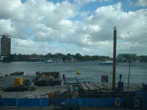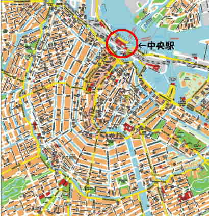 | アムステルダム中央駅の反対側は湾の入り口となっている(下図参照) |
