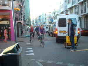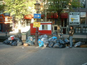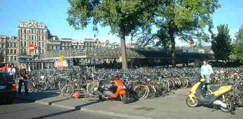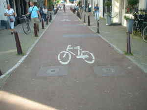 ところでオランダと言えば、自転車、自転車と言えばオランダである。オリンピック競技でもオランダはイタリアなどとともに自転車競技が強い。実際、アムスの町はベルリン同様、いやベルリン以上に自転車レーンが優先され設置されている。自転車優先道路だけでなく、鉄道でも自転車の乗り入れがOKである。当然のこととして、自転車利用は、国土全体に無数に配置された風車、風力発電とともに、温暖化防止に大きく寄与している。アムステルダムの中心街は、道幅も狭く、入り組んでおり、自動車は使いたくても使いにくいことも自転車が使われる大きな理由のようだ。オランダでは、アムステルダムに限らず、他の都市でも農村でも自転車利用が専用レーンの設置や多数の駐輪場の設置、鉄道への優先的な持ち込み、レンタバイクシステムなどに見るように、国家的なプロジェクトとして推進されていことが今回の数日の滞在でも十分分かった。