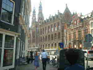 アムスの中央駅の並びには世界的なホテルチェーン、IBISの箱形の建築物と大型駐車場(筒型の建築物)がある。もっぱらこれらは極めて例外的な建築物であると言って良いだろう。このような建築物はアムステルダムの歴史的景観を破壊していると感じた。このIBISホテルはドイツのドレスデンでも中央駅近くに3棟続けて、箱形の殺風景なビジネスホテルのようなホテルを構えていたが、およそドレスデン、すなわちザクセン王国の歴史を持つ街にまったく似つかわしくないチンケな建築物であった。どうにかならないものだろうか?