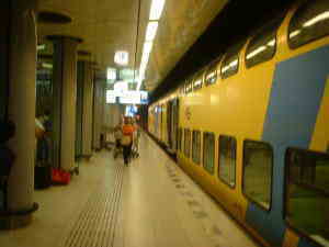 スキポール空港からアムステルダムの市中心部へは列車が便利だ。空港の地下に空港駅がある。何とも使いづらい自動券売機はあきらめ切符売り場に並ぶ。