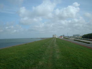 海軍博物館の真ん前は、オランダの地球温暖化防衛の最前線、北海との接点(大堤防)である。国土の大部分が海水面より7−10m低いオランダを、温暖化による海水面上昇から防衛する最前線があった。写真にあるように実に立派な大堤防(巨大構造物)である。最突端に、北海と言う名のレストランがあった。ここで昼食をとり、一路、ペッテン、アルクマール、アムステルダムのスキポール経由で帰路(成田)に向かった。