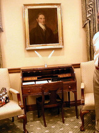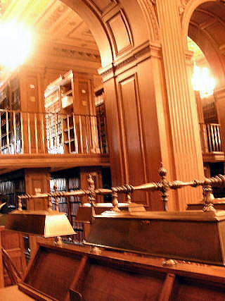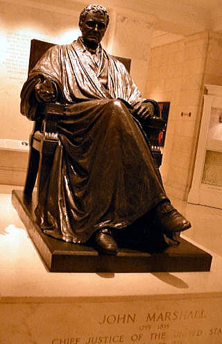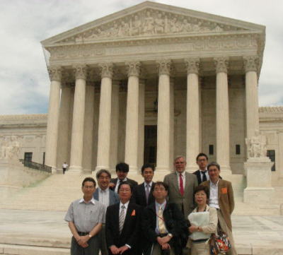 米国連邦最高裁判所訪問記 2010年6月下旬より1週間、日本弁護士連合会関連でワシントンDCにスーパーファンド法などの現地調査に通訳として随行しました。その際、連邦最高裁判所を訪問したので、以下に概要を報告します。 ワシントンDCにある連邦最高裁判所はひろく一般市民に公開されています。土日、祝日でないかぎり、朝9:00〜4:30まで見学することができます。 ![]() 連邦最高裁判所 撮影:池田こみち Nikon CoolPix S10 【建物】 1935年に建築され連邦議会に面しています。外観や廊下などすべてが大理石造りだが、法廷内は諸外国から輸入された大理石を用いています。よりユニバーサルな視点から審理を行うことのシンボルとしているとのこと。 ![]() 米国の連邦最高裁判所(Federal Supreme Court)の外観です! ![]() 連邦最高裁判所の紋章です! 【最高裁での審理】 毎年10,000件ほどが最高裁判所への申し立てがありますが、クラークや裁判官が内容を精査して口頭弁論が行われる案件は1%、100件ほどであるという。刑務所からの訴えが8割程度を占めるという。 毎年、10月第一月曜日から翌年の4月ま法廷が開かれます。最高裁での口頭弁論は1時間(双方の代理人から30分ずつ)となっています。傍聴も認められている。5月〜6月は判決の言い渡しの期間となっています。基本的に多数決だがそれぞれの立場からの意見が求められます。 【法廷】 法廷は天井が高くどっしりした大理石と樫の木でできていて、9人の裁判官が弓形にしつらえられた裁判官席に並ぶようになっています。直線的な座席にしていないのはお互いの顔を見ての意見交換ができるためだという。 【最高裁弁護士会(Supreme Court Bar)】 最高裁弁護士会への登録は毎年5000人を超えています。3年間の研修が求められるが、弁護士としての権威付けのために登録を希望する人が絶えないという。二人の推薦人がいないと登録申し込みができないとのことです。 ![]() 最高裁の法廷内部(撮影禁止なので写真を撮影) 撮影:池田こみち Nikon CoolPix S10 【マーシャル像】 第四代最高裁長官ジョン・マーシャルは司法の独立を確立した人物としてもっとも重要視されています。 ![]() マーシャル像 撮影:池田こみち Nikon CoolPix S10 【最高裁の事務方】 各裁判官には4名のクラークがついている。クラークの任期は一年。採用は各裁判官が直接行います。事務方のトップは主任書記官(クラーク)。訪問した日は出張中だったため、部屋をお借りしてDeputy Clerkから説明を受けました。古い丁度も沢山残されていて格調高い部屋には、初代クラークの肖像画とともに使っていた文机が残されていました。 ![]() 最高裁判所就任秘書官の部屋にて説明を受ける 撮影:池田こみち Nikon CoolPix S10 ![]() 初代クラークと使った机 撮影:池田こみち Nikon CoolPix S10 【螺旋階段】 支柱をもたない大理石の螺旋階段は5階〜地下まで繋がっています。このタイプの螺旋階段はパリのオペラハウス、バチカン、ミネソタの議事堂の4箇所にしかありません。 ![]() 最高裁のらせん階段 撮影:池田こみち Nikon CoolPix S10 ![]() らせん階段の説明 撮影:池田こみち Nikon CoolPix S10 【図書館】 図書館には米国各州の州法や判例など関連の情報がアルファベット順にアラバマ州からユタ州まで並んでいます。 ![]() 最高裁判所図書館 撮影:池田こみち Nikon CoolPix S10 ![]() 最高裁判所図書館 撮影:池田こみち Nikon CoolPix S10 天井や床のカーペットの模様は、アメリカの4つの重要な植物の花(綿、小麦、たばこ、トウモロコシ)がデザインされています。天井近くには、大理石で世界の法典に関連する人物像が彫刻されています。 ![]() 最高裁法廷前の廊下 撮影:池田こみち Nikon CoolPix S10 ![]() 最高裁最上階にあったバスケットコートで 撮影:池田こみち Nikon CoolPix S10 ![]() 最高裁判所の前では死刑反対の市民運動がキャンペーンを 撮影:池田こみち Nikon CoolPix S10 ![]() 最高裁の前で全員で記念撮影 撮影:池田こみち Nikon CoolPix S10 |