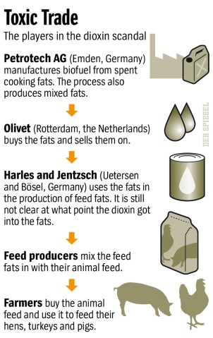 2010年12月、ドイツの家畜飼料にダイオキシンが混入し大きな問題となっていることが年明け日本でも報道された。 以下は1月5日の時事通信の報道である。