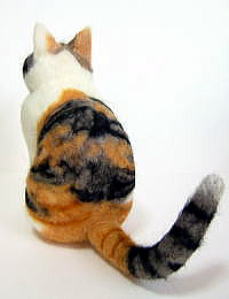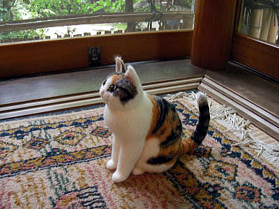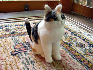 まるで生きているようです。複雑な三毛模様の色と毛並み、しっぽ、ひげ、指のマメなど、どれも質感まで再現されていてびっくりです。
