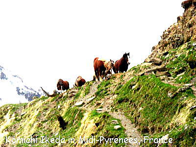 例年の南仏は4月はとても暖かく20℃を越す陽気だそうだが、今年は異常に気温が低く雨が多いとのことだ。 ドイツのケルンやミュンヘンからやってきた連中が、「ドイツは好天で暖かかったのに、せっかく南仏まで来てなんでこんなに寒くて雨なの」と不満顔。とは言え、少しでも地域の自然に触れてみようと、曇天の中ピレネーに出かけてみた。 ![]() ●が今回の行き先(フランス南部、スペインとは100kmの近さ) アンドラとの国境線(白い帯)の南がピレネー ピレネー山脈の最高峰は3000mを超え、200以上の山々が地中海沿岸から大西洋まで440 km以上、幅が30〜50kmにも渡って連なり、イベリア半島とフランス以東のヨーロッパを隔てている。 ![]() プレネー山脈の標識 撮影:池田こみち Nikon CoolPix S10 お天気がよければMielan村からも残雪の残る山脈がよく見渡せる。 標高が高いところでは、急斜面で雪崩も起きやすいため、まだ登山ルートはもちろんのこと、山越えの道も閉鎖されているところがあるようだったが、何はともあれ近くで山を見ようと、出かけていった。 ![]() 一時だけピレネーに日が差した 撮影:池田こみち Nikon CoolPix S10 Mielan村から南下してターブ(Tarbes)を過ぎ、ルルド(Lourdes)を過ぎると次第に山が迫ってくる。そこからさらに、小さな村々の隙間を縫うように車を走らせ、まずはスペイン橋(Pont d'Espagne)に向かった。 そこから、ピレネー国立公園のビニュマール山の山麓ハイキングを試みようとしたのだが、あいにく標高が上がるにつれて雨が降り出し、気温も4℃と低く到底ハイキングは出来ずに諦めた。 ![]() 寒々しいピレネー 撮影:池田こみち Nikon CoolPix S10 ![]() 残雪のピレネー山脈 撮影:池田こみち Nikon CoolPix S10 一旦、麓の村まで引き返し、何とか歩けそうな別の山を目指して再び車を走らせる。 Col du Soulor と Col d'Aubisque をつなぐサイクリングロードやハイキングルートのあるアザンの谷(Val d'Azun)入り口までやってきたがやはり天候がわるくCol d'Aubisqueへの道路は閉鎖(Ferme)状態。 仕方なく、我々は、駐車場に車をおいてCol du Soulorの道路を少しだけ歩いてみることにした。ほとんど車の往来もなく舗装道路なので装備はなくても楽に歩けたが、時折吹き付ける風と雨には参った。 駐車場がピークで標高はおよそ1500m、そこから3.5kmを下り、再び戻ってくるというハイキングだったが、日頃の運動不足もたたり、結構きつかった。 天候は最悪だったが、ピレネーのさわりだけでも見て歩けたのは幸いだった。 途中、持って行った手作りのサンドイッチでランチをしていたら、思いがけず、野生の馬の群れ12頭がゆったりと道路を歩いて谷に下りていくのに出会った。 ![]() ピレネーの野生の馬 撮影:池田こみち Nikon CoolPix S10 ![]() ピレネーの野生の馬 撮影:池田こみち Nikon CoolPix S10 そして、遠くでは雪崩の音らしき轟音も響いていた。また、こんな悪天候の中、サイクリングで山を越えていく強者にも出会った。 ![]() ピレネーをサイクリングするひと 撮影:池田こみち Nikon CoolPix S10 ![]() ピレネーをサイクリングするひと 撮影:池田こみち Nikon CoolPix S10 何と言ってもフランスは自転車王国、ツールドフランスにははピレネー越えも含まれているという。自転車で山を登っていく人に向かってつい、「がんばって」と日本語で声を掛けてしまった。 やっとのことで駐車場脇の山小屋にもどり、暖かいカフェオレ、ショコラオレを頂いて一息つくことができた。 ![]() ピレネーの山小屋でカフェオレを 撮影:池田こみち Nikon CoolPix S10 |
