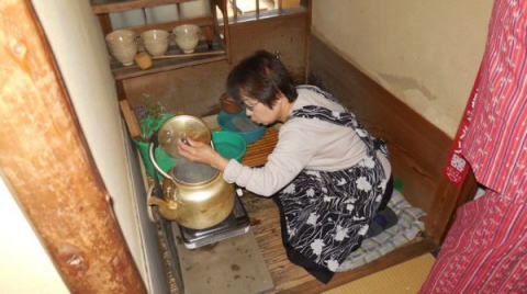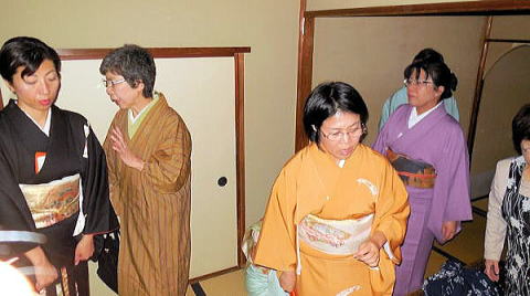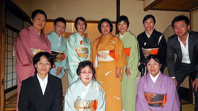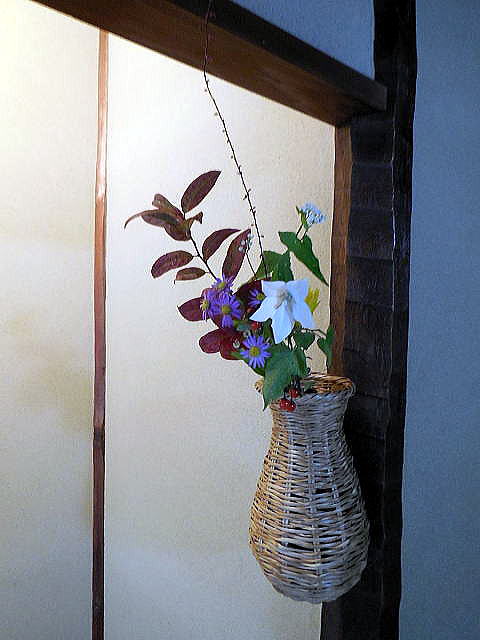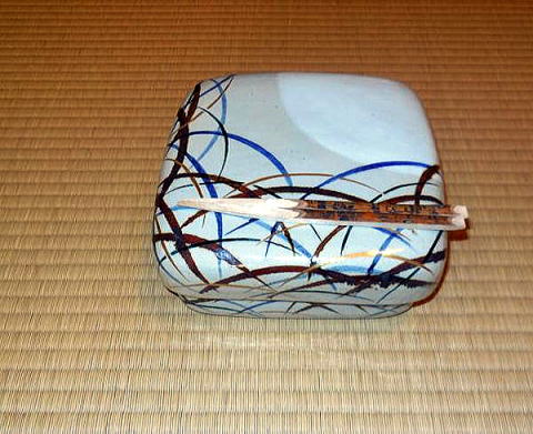 | ※ 独立系メディア E-wave Tokyo 茶道 文化 今年も好天に恵まれ、無事に無極会が終了しました。ご参加いただいた皆様ありがとうございました。秋の一日、ゆっくりとお楽しみ戴けたら幸いでした。 今年は6年ぶりに小間(台目席)を担当しました。茶道会館の台目席は三畳台目ですので、10名様くらいでちょうどですが、大勢のお客様でしたので、平均12名、最大14名のお客様にお入り頂きました。 ![]() 小間(台目席) 広間とは違った小間の風情を味わって頂けるような道具を選んでみましたが、なかなか思うようには行きません。 ![]() 床の間 ![]() 左から池田宗蹊、山形美智子、青山貞一 下は青山さんとご一緒に参加された斎藤真実さんです。写真から今年も11月3日が好天なことが分かります。 ![]() 青山さんとご一緒に参加された斎藤真実さん ●軸は 雁来紅 大徳寺 伝衣和尚の画賛 葉鶏頭の水墨画に 「帰去来 来去帰」の文字 「帰去来」とは、中国、六朝時代の東晋の詩人 陶淵明の詩に由来します。「田園 将(まさ)に蕪(あ)れなんとす 胡(なん)ぞ帰らざる」という一節が有名です。拘束を嫌い、官職を辞して、自然豊かな故郷に帰り心豊かに生きようとする決意を述べた詩ということで、今を生きる私たちの心にも通じるものがあります。 この画賛を書かれた伝衣和尚は、大徳寺第六代管長を務め、昭和15年に七十歳で亡くなられています。 何度目かのお席でお正客をしていただいたお客様とのお話で、ちょうどご自身もリタイヤされたばかりだったこともあり、ご自身の心境とぴったりと感想を述べて頂きました。また、「陶淵明はお酒が好きで飲兵衛だったみたいです。」というエピソードも教えて頂き、お席が和みました。ちょうど茶杓の銘が「林間暖酒」という白楽天の詩からとった銘でしたのでなおさらでした。お酒好きにはこれからの季節、紅葉の落ち葉の焚き火でゆっくりお燗をして一杯というのが何とも言えない愉しみとなります。 ●花入 富士の裾野の竹を以て 九つの内 掛け花篭 一閑作 ![]() 花のアップ 今年の立冬は11月8日、風炉から炉に切り替わる時期ももうすぐです。11月3日は晩秋の残花をいろいろ篭に入れてみました。7種類です。照葉は、小葉の髄菜、ヒヨドリ上戸の赤い実、白の桔梗、白い蕎麦の花、赤い水引、紫色の野紺菊そして黄色の嵯峨菊でした。せっかくの小間ですので、都会の片隅のお茶席ではありましたが、お客様に自然を感じて頂ければとの思いからです。 ●香合 紅葉古木吹き寄せ蒔絵 勧修寺の古木を以て ![]() 香合のアップ 紅葉の古材を以て作られた香合は、小間にぴったりの趣を出しています。蓋と実を合わせた立ち上がりの部分に金彩で吹き寄せの蒔絵(銀杏や紅葉、松葉が散らして描かれています)があり、紅葉の古材の木肌を残してつくられた全体の雰囲気を壊さない地味なしつらえとなっています。 ![]() 小間全景 ![]() 風炉・釜と水指 ●風炉・釜 茶道会館の台目席は深三畳の台目席で点前座には台目棚があります。今年は土風炉(雲龍風炉)に雲龍釜の小を使ってみました。土風炉には、川部宗無宗匠の箱書きがあります。また、対となっている小の雲龍釜(道也作)は、利休好みで、鉄の共蓋に掻立環が付いています。胴回りにはその名の通り雲と龍の鋳出し模様があります。利休の時代に小間で使われていた様子を思い浮かべながらお茶を点ててみました。 ●水指 今回使用した水指は、「伊賀耳付き」。どっしりとお座布団の上に座ったような姿で、大きな耳と共蓋のつまみが目立ちます。前面には緑色の釉薬が美しい景色を作り出しています。重いので置き据えとさせて頂きました。私どもの師匠である川部百代先生のご主人である川部宗有宗匠の箱書きがあり、先ほどの風炉とともに、無極会にとってゆかりのあるお道具の一つです。 ![]() 乾山写し喰篭 ![]() 蓋を開けたところ ![]() 萩 菊形 喰篭 お菓子は虎屋製のきんとん「初時雨」という銘でした。乾山写しの「武蔵野」と萩焼きの「菊型」の喰篭に入れてみました。お点前はいまひとつうまく出来なくてもせめて美味しいお菓子とお茶を召し仕上がって頂いてお茶会を楽しんで頂ければと思っています。母がきんとんが好きでしたので毎年きんとん製のお菓子を選んでいます。そして、点前は美味しいお茶を点てることに集中するように、心がけています。 ![]() 主茶碗と茶器 主茶碗は、井戸形の黒楽で銘は「真砂」でした。小間には黒が似合うように思います。茶器(棗)は先代の家元即中斎による乱菊の自画で、これも金銀や色彩豊かな蒔絵とは異なり、楚々とした美しさがあります。 外はまだ紅葉には早い茶道会館のお庭でしたが、吹く風は少し冷たく心地よい秋の風でした。せめて、お茶碗で秋の風景を味わって頂こうと、いくつか紅葉の柄の茶碗を使いました。 ![]() 乾山写し、武蔵野 永楽造 ![]() 紅葉 銘「時雨」、真葛焼き ![]() 蔦の絵、真葛焼き ![]() 乾山写し雲錦模様、松阪万古 ![]() 楓 刷毛目、河合栄之助作 斯くして
