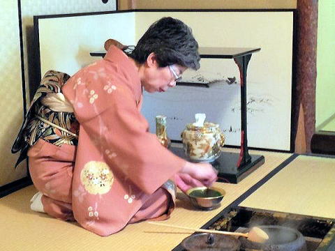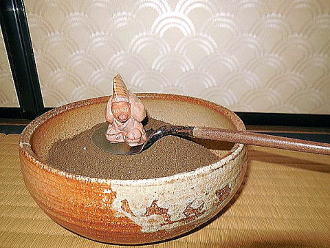 | ※ 独立系メディア E-wave Tokyo 茶道 文化 暖冬の年明けとなりましたが、みなさま佳いお年をお迎えのこととお慶び申し上げます。国内外の政治情勢は昨年来、各地で不穏な動きが相次ぎ、新たな中東戦争や世界大戦へと進みかねない状況となっております。国内でも暖かいのは気温だけで経済も人心も冷たくすさんだニュースも多く流れました。 そんな中ではございますが、お陰様で丙申年の今年も無事に社中十名での初釜を滞りなく、いつも通り執り行うことが出来ましたことは大変有り難いことでございました。母の代から永年続けてきた同じ料理をひとつひとつ時間をかけて準備し、お正月にふさわしい華やかでお目出度い道具組で、きちっとした初釜ができ、社中一同もまた一年、気を引き締めてお稽古に励む心構えができたと思います。同時に、心静かに永年一緒に茶道に親しんできたお仲間と一緒に穏やかな時を過ごし改めて平和の大切さ、有り難さを感じることもできました。 一緒にお稽古をみて呉れる八十五歳の叔母が、唯一戦争の体験者ですが、戦後再び茶道に親しめるようになるまでの苦労話は今では貴重なものとなっています。 初釜の手順は毎年同じですので、ここでは割愛させて頂き、今年の道具組について、少しだけご紹介させて頂きます。 ■掛け物 玄関には、五節句の最初の節句である、「人日(じんじつ)」の軸を掛けました。本来は1月7日を「人日」とし、七種粥を食べることから七草の節句ともいいますが、お正月ということで、富士山、凧揚げ、松飾りなどの画がお客様をお迎えします。 寄付(よりつき)には、昨年暮れに八十七歳で亡くなられた表千家教授 山下恵光宗匠の筆による「春風 弄新陽」(春風、新陽をもてあそぶ)という色紙を軸に表装したものを掛けました。これは二回り前の申年(平成四年壬申)に書いて頂いたもので、私も一時期お教え頂いた山下宗匠を偲んで掛けさせて頂きました。 本席には、毎年お馴染みの先代表千家家元即中斎宗匠による「鶯 春入千林」です。これは、表千家家元には元伯宗旦居士の揮毫になるこの句の軸が伝えられており、家元の初釜の床に掛けるのを恒例としていることから、我が家でも毎年、初釜には欠かせないお軸となっています。今年は京都のお家元でも1月10日から初釜が始まったようでした。 ◆茶道表千家で初釜始まる 上京区の不審菴 朝日新聞(京都) http://www.asahi.com/articles/ASH1B4J2DH1BPLZB005.html ![]() 写真 1 玄関 ![]() 写真 2 寄付 ![]() 写真 3 本席 その他、床の間には、爪紅の桂盆に白い小石を敷いて「コウネンキ」を飾り、琵琶床の奥の柱には薬を入れた「カリロク」を掛け、花入れは青竹に結び柳、蝋梅、椿を飾ります。みずみずしく芽吹いた柳のしなやかな枝振りにも春を感じます。また、既に満開となっている蝋梅の香りもお座敷を満たしました。 ![]() 写真 4 床飾り全体 ■道具組 毎年、初釜では、4つの大棚を交替で使用しています。今年は及台子(きゅうだいす)を用いました。及台子には木地のもの、真塗りのものなどいろいろありますが、今回使用したのは宗旦好みの青漆爪紅の艶やかなものです。これは、宗旦が東福門院(徳川秀忠の五女和子、後水尾天皇の中宮)へ献茶の折に好んだものといわれています。 棚には、水指・杓立て・建水・蓋置きがセットになっている「皆具(かいぐ)」を用いました。華やかな源氏香の柄をちりばめた仁清写し(真葛焼)です。それに合わせて炉縁にも柳桜蒔絵を用い、お正月らしさを演出しています。 ![]() 写真 5 棚の皆具 ![]() 写真 6 炭点前(炉縁は柳桜蒔絵) ■香合 初炭で用いる香合は「ブリブリ」(振り振り、夫利婦利とも書く)。これはもともと車と紐をつけ子供が引っ張って遊ぶおもちゃだったものを、江戸中期に活躍した表千家六世家元覚々斎が香合に好まれたとされています。 家のものは、奈良彫りで蓋には高砂と松竹梅の絵があり、全体が金色に塗られた派手やかなものですが、ご夫婦の円満長寿、家族の健康を願うものとしてお正月に用いられます。焼き物でも同じ形、同じ絵柄のものがあります。 ![]() 写真 7 羽、香合 後炭では、干支に因んで、萩焼きの三番叟を用いました。 ![]() 写真 8 萩焼三番叟香合(灰器の上) ■茶入れ、茶杓 濃茶に用いる茶入れは、信楽焼の灰被り、銘「寿山」を用いました。大ぶりなので毎年これを使っています。銘もお目出度いのでお正月にふさわしい茶入れです。茶杓は、即中斎宗匠の「松の翠」でした。 薄茶に用いた棗は、梨地に海老の蒔絵を施した大棗。茶杓は大徳寺浩明和尚のご銘で「瑞鶴」を用いました。 いずれの組み合わせも、お目出度い取り合わせでお正月ならではです。 ![]() 写真 9 濃茶点前と三器拝見挨拶 ![]() 写真10 濃茶点前と三器拝見挨拶 ![]() 写真11 薄茶点前 その他、茶碗も、濃茶には、内側を金銀に塗った紫野窯の「重ね茶碗島台」、薄茶には、「曙」(楽)を主に、替え茶碗には、乾山写し「寒牡丹」(永楽)、乾山写し「南天に雪」(永楽)、「