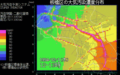 大気環境リアルタイムシミュレーションシステム表示画面の例