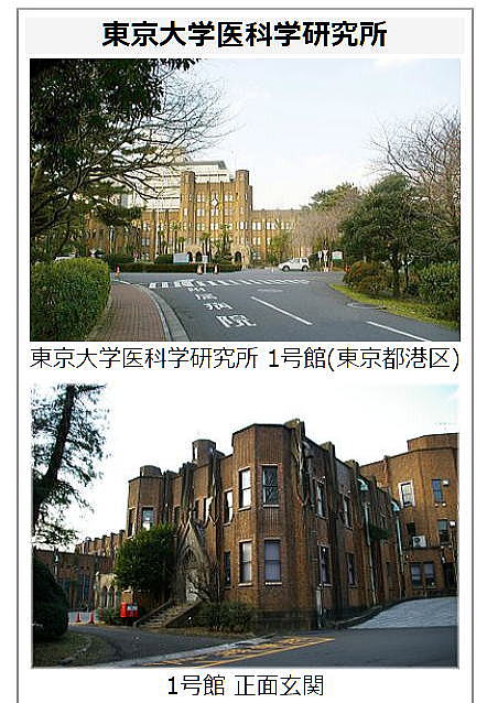 総合目次へ 731部隊の推定組織 731部隊に関与した医師・医学者 731部隊関与者のその後 ◆731部隊に関与した医者、医学者の その後(国立予防研究所で返り咲き者) 以下の表は、戦前の伝染病研究所(現在の東京大学医科学研究所)から731部隊にさまざまな植生で参加し人体実験などに関与し、戦後、国立予防衛生研究所を経由し、国立感染症研究所の所長や部長となった研究者のリストである。 , 731部隊の多くの関係者は、人体実験データなどを米国に渡すことをバーターとして、ロシアのハバロフスク裁判の被告となった者以外は、全員刑事訴追を免れて、その後日本に渡り、京大、東大などの総長や医学部長などになっている。 以下の資料は、そのうち、戦前伝染病研究所(現在、東大医科研)から731部隊に参加し、戦後、国立予防衛生研究所を経由し国立感染症研究所の幹部となった研究者のリストである。 ![]() 主な出典:この世の地獄!水俣病・731部隊・南京大虐殺 ◆731部隊と伝染病研究所(のちの東京大学医科学研究所) 東京大学医科学研究所(通称、医科研)は、初代所長が北里柴三郎でありいわばエリート医学者のための研究所でもある。