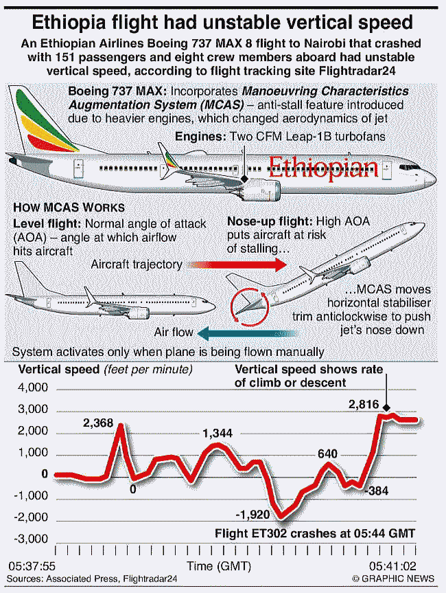 2019年3月10日、アディスアベバを離陸したエチオピア航空302便(B737MAX 8、機体記号ET-