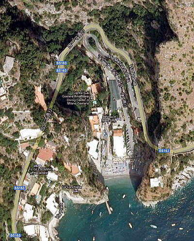 2013年アマルフィ海岸現地視察調査報告<125本 全体メニュー> アマルフィ海岸の位置 フローレの紋章 イタリア国旗 <4>日程・訪問先別ハイライト(2013年6月6日 その5 フローレ) 最初に、訪問先別の秀逸で希有な景観を写真でブログ風にご紹介しましょう。ソレント半島及びアマルフィ海岸の景観は、単なる自然の美ではありません。9世紀以来、持続する歴史や文化に彩られた空、海、地形によって醸成された希有で秀逸そして洗練された美があります。しかも、そこには慎ましやかな住民の生活と小規模自治体の競争的分権の連携があります。 ◆フレーレのB&Bと断崖絶壁のレストラン 2013年6月6日 この日の宿泊はフローレ(Furore)です。フローレは、下の写真にあるように断崖絶壁の上にある人口わずか900人ほどのコムーネです。アマルフィ海岸におけるフローレの位置、プライアートとコンカ・デイ・マリーニの間にあります。 しかし、フローレのまちは実質、崖の上にあるため、フローレに行くためには、一旦、アマルフィに近いコンカ・デイ・マリーニから戻るようにして急な坂を車を登ってゆかなければなりません。アマルフィ側からはまだしもプライオーリの側からフローレに行くためには、かなりの距離を覚悟しなければなりません。 ![]() フローレ それはアマルフィとポジターノをつなぐ歴史ある900人の小さなむら Source:Wikipedia Italia 下の地形図は、広域で見た場合のフローレの位置が分かります。左(西)にプライアーノ、右(東)にコンカ・デイ・マリーニに挟まれた崖の上の台地にフローレはあります。 ![]() ピアノ・ディ・ソレントからアマルフィまでの海岸 出典:グーグルマップ フローレ村へ入口は、徒歩ではいるには西側と東側にひとつずつ、さらに車ではアマルフィ近くからと3つあります。このように、車で行けるのは、コンカ・デイ・マリーニのアマルフィ側からだけですが、これもかなりの距離となります。 下の地図に歩いてフローレに登る場合の2つの経路、すなわち西側(Furore Marina di Praia )と東側(Furore Fiordo)の絶壁を上る登山道を○で示します。地元のひとはいざ知らず、実際に両コースを完遂した今回の経験(後述)からすると、いずれの側もそれなりの装備が必要になります。一方、私達が宿泊する予定のB&Bは、下の地図の橙色のA近くに位置しています。標高は200mから250mの間のはずです。 ![]() フローレに海側から入るには2つの入り口がある。 左側が Furore Marina di Praia、右側が Furore Fiordo Source:Google Map 以下の写真は、Marina di Praia(上の写真の左側の○)です。 ![]() Furore Marina di Praia 撮影:青山貞一 Nikon Coolpix S8 2011.3 下はフローレの Fiordo (右側の○)です。両者は地形、構造が似ていますが、フローレにありながらまったく別のものです。 ![]() 橋の上から Fiordoを見たところ。奧の崖の谷は切り込みがかなり深い 撮影:青山貞一 Nikon Coolpix S8 2011.3 以下はフローレのFiordoに降りる入り口に立つ青山貞一です(これは2011年3月)。 ![]() フローレのFiordoに降りる入り口に立つ青山貞一 撮影:池田こみち Nikon Coolpix S8 2011.3 ![]() フローレのFiordoを橋の上から見る池田こみち 撮影:青山貞一 Nikon Coolpix S8 2011.3 ![]() フローレのFiordoを橋の上から釣りをしている住民を見る池田こみち 撮影:青山貞一 Nikon Coolpix S8 2011.3
