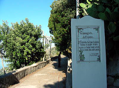 2013年アマルフィ海岸現地視察調査報告<125本 全体メニュー> アマルフィ海岸の位置 フローレの紋章 イタリア国旗 <4>日程・訪問先別ハイライト(2013年6月6日 その5 フローレのBB近くを散策) 最初に、訪問先別の秀逸で希有な景観を写真でブログ風にご紹介しましょう。ソレント半島及びアマルフィ海岸の景観は、単なる自然の美ではありません。9世紀以来、持続する歴史や文化に彩られた空、海、地形によって醸成された希有で秀逸そして洗練された美があります。しかも、そこには慎ましやかな住民の生活と小規模自治体の競争的分権の連携があります。 ◆フレーレのB&Bの周辺を散策 2013年6月7日 昨日、下の薄暮のプライアーノの写真を写した場所の近くで朝のプライアーノの写真を撮ってみました。 ![]() 撮影:青山貞一 以下がその写真です。 宿泊しているB&Bのテラスから撮影したものです。 何とすばらしいアマルフィ海岸らしい写真がとれました。咲いている花は、ブーゲンビリアです。 ![]() ブーゲンビリアが咲き誇る「世界一美しい海岸」 フローレのテラスから撮影したプライアーノの東端 撮影:青山貞一 Digital Camera Coolpix S8 2013-6-6 朝食は8時30分、下はB&Bのテラスです。左奧に見えるテント風の東屋で朝食をとります。 ![]() B&Bのテラス 撮影:青山貞一 フローレにはあちこちに以下のようなセラミックの看板ありました。Contrada della Gatta とあります。別の場所ではセミのようなマークがありました。帰国後調べたら、Contradaが町会、Gattaが雌猫でしたので、おそらく町会ごとのシンボルマークと思われます。さしずめ雌猫町会とでもいうんでしょうね。 ![]() フローレの町会のマーク 雌猫町会 撮影:池田こみち レストランに近いところには、以下のマークがありました。これも帰国後に調べたら Contrada della Cicala とあり、ここは、蝉町会というんでしょうね。 ![]() フローレの町会のマーク 蝉町会 撮影:池田こみち B&Bから西に行くと下の教会があります。薄暮のプライアーノの写真に写っていた教会の鐘楼です。写真では明かりがともっていました。 ![]() 撮影:青山貞一 さらに西にゆくと、直訳すると「愛の小径」とでもいう、かわいらしい遊歩道がありました。下はその入り口です。 ![]() 撮影:青山貞一 ![]() 撮影:池田こみち その小さな遊歩道を西側に向けて歩くと、下の写真のところで終わりとなっていました。そこからはプライアーノの西側がきれいに見えます。 ![]() 撮影:青山貞一 歩道の終点には、下のタイルがあり、なぜか「愛」という日本語のタイルもありました。 ![]() 撮影:青山貞一 さらに、この遊歩道の終点に以下の看板がありました。直訳すると、リュウゼツランの花の道です。さらに Marina di Praia まで2時間とあります。つまり、ここすなわち サント・エリア(Elia)からトレッキングでフローレのプライア海岸まで2時間で行けると書いてあるのです。 ![]() 撮影:青山貞一 下の写真は、トレッキングコースの終点からプライアーノ方面を見て撮影したものですが、よく見ると右下の日陰のなかに小さな道が見えます。おそらくこの道を2時間(ore 2:00)歩くと、フローレの崖下に位置するプライア海岸にでるということなのでしょう。 ![]() 撮影:青山貞一 ここで一旦、B&Bに戻りました。B&Bの真ん前に、下の看板がありました。読めば、フローレの サンタ・エリアとフィオルド(Fiordo)をつなぐみちで、約40分(min 40)かかるとあります。 ![]() 撮影:青山貞一 そこで、私達はB&Bの前にある階段を約1000段下り、フローレの フィオルド(Fiordo)まで行き、そのあと、フローレのプライア海岸(Marina di Praia)まで幹線国道(Super Strada)ss163を歩き、そこで一休みしたあと。さらにプライアーノまで歩きます。プライアーノの大聖堂などを訪問した後、SITAバスでプライア海岸(Marina di Praia)までもどり、そこから山を登り、谷を越え、最終的にB&Bがあるフローレまで戻るという壮大(笑い)な一日がかりのトレッキングの計画を立てました。 つづく |
