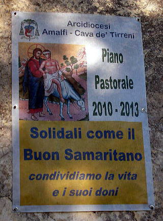 2013年アマルフィ海岸現地視察調査報告<125本 全体メニュー> アマルフィ海岸の位置 フローレの紋章 イタリア国旗 <4>日程・訪問先別ハイライト(2013年6月7日 その6 フローレの崖上を散策) 最初に、訪問先別の秀逸で希有な景観を写真でブログ風にご紹介しましょう。ソレント半島及びアマルフィ海岸の景観は、単なる自然の美ではありません。9世紀以来、持続する歴史や文化に彩られた空、海、地形によって醸成された希有で秀逸そして洗練された美があります。しかも、そこには慎ましやかな住民の生活と小規模自治体の競争的分権の連携があります。 ◆フローレの崖上の教会とレストラン 2013年6月6日 フローレの紋章フローレとプライアーノの間での1日かけての大トレッキングが終わりました。思った以上に大変で疲れたトレッキングでしたが、思いの外、多くの収穫があったと思います。 さて、今日の夜はどこのレストランに行くかと思案しました。昨日、このB&Bに到着した際、B&Bのご主人がB&Bの崖上にもレストランがあると言っていました。 そこで、疲れてはいるが、車でB&Bの崖上にあるレストランを探しに行くことにした。また崖上にも教会があるので、可能なら外観だけでも教会を見ようと考えました。 最初に来たとき、B&Bの場所が分からず、崖上を東のはずれまで走っているので、だいたい様子は掴んでいます。 車で崖上を上ってゆくと、小さな教会があり、その前の広場に車を駐めました。ちょうど教会の前近くにレストランもありました。すると、ありました、ありました、雌猫自治会のシンボルマークが。ここはサンタニェーロ地区の雌猫自治会ということになります。 ![]() 撮影:青山貞一 デジカメ Nikon CoolPix S8 以下が崖上の古い教会です。 ![]() フローレのサン・ミケーレ教会 撮影:青山貞一 デジカメ Nikon CoolPix S8 この教会は、CHURCH OF SAN MICHELE、サン・ミケーレ教会と言います。下の写真は、さらに上空より撮影した教会の資料にあったものですが、フローレと言え、何とまぁ、すごいところに立地しています。右上は、コンカ・ディ・マリーニの岬です。 ![]() 断崖絶壁の上に立つフローレのサン・ミケーレ教会 フローレ村役場のパンフより グーグルマップで見ると、サン・ミケーレ教会はこんな高い崖の上にあることが分かります。 ![]() ![]() フローレのサン・ミケーレ教会 撮影:青山貞一 デジカメ Nikon CoolPix S8 下のポスターには、「ティレニア山脈のアマルフィとカーバ大司教区の2010年から2013年のプラン、良きサマリア人としての連帯」とあります。 実は最終日の前々日と前日、私達はアマルフィ海岸の一番東端にあるヴェリトリ・スル・マーレに滞在しましたが、その少し北にカーヴァという5万2千人ほどのすばらしいまちがありました。「アマルフィとカーバ」の「カーヴァ」はそのカーバです。アマルフィとカーヴァが大司教区を構成しているでしょう。私達はそのカーヴァで立派な聖アントニオ大聖堂をみました(後のブログで紹介します)。 ![]() 撮影:青山貞一 デジカメ Nikon CoolPix S8 ![]() フローレのサン・ミケーレ教会にて 撮影:青山貞一 デジカメ Nikon CoolPix S8 ![]() フローレのサン・ミケーレ教会の前で 撮影:青山貞一 デジカメ Nikon CoolPix S8 ちょうど池田が日影にはいってしまいました 下のYouTube動画は、Pasquale1540さんがフローレのサン・ミケーレの礼拝を写したものです。 Chiesa di San Michele Furore You Tube ところで、下の写真は、教会広場の前にあったレストランです。Luca's ルカといいます。場所は Via San Michele, 1 | Salita San Michele, 84010 Furoreにあります。このレストランも開店は午後7時ということで、待ちました。 下の写真はトリップアドバイザーのものです、 ![]() Luca's (トリップアドバイザー提供) ![]() 撮影:青山貞一 デジカメ Nikon CoolPix S8 店の中は、オールドファッションでレトロチック、なかなかなものです。 ![]() 撮影:青山貞一 デジカメ Nikon CoolPix S8 このフローレのいきでレトロなレストランでは、下のようなサラダ、魚介のアンティパスタそして本格パスタを頂きました。車を運転するのでいつもワインなどはなし、ガス抜きの水を注文しています。 下はレストランでご馳走を待つ池田です。 ![]() 撮影:青山貞一 デジカメ Nikon CoolPix S8 サラダに付いてくるパニーニがすごく美味しいのです。 ![]() 撮影:青山貞一 デジカメ Nikon CoolPix S8 フローレは、魚介の本場、アンティパスタには魚介のフリット(揚げたもの)をたのみましたが、鰯(いわし)は、すごく塩がききすぎていました。いかは美味でした。 ![]() 撮影:青山貞一 デジカメ Nikon CoolPix S8 なぜか、フローレのパスタは、下の写真のように幅が太いもので、日本で言うところのパスタはスパゲッティと指定しないと出てきません。。 ![]() 撮影:青山貞一 デジカメ Nikon CoolPix S8 こうして、長かった6月7日も終わり、明日は船でフローレのプライアからカプリまで往復します。 つづく |