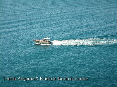 海にはプレジャーボートが高速で航行していました。明日は、私達もこれから行くプライア海岸からカプリ島まで一日、6−7時間のツアーとなります。