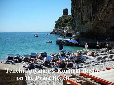 フローレのプライア海岸は下の写真のように午後の強い日差しを浴びる海水浴客がたくさんいました。こんな狭い浜辺ですが、ソレント半島、アマルフィ海岸には砂浜はあまりないので貴重なビーチとなっているようです。
