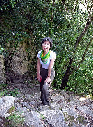 登山口から石の階段で断崖絶壁を直線的に200mほど登ったところに、下の写真にあるように、何とヒツジが放牧されていました。標高はおそらく300mほどです。