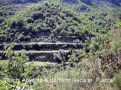 フローレ側の斜面を下りてきた時に撮影した羊飼いの棚田状の放牧地。下の写真の中央より少し左にある家が、羊飼いの家です。私達は羊飼いの家のそばでも道を尋ねていますが、あんな凄いところにあったわけです。