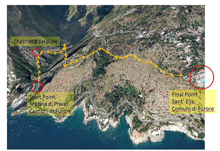 この辺は下の写真にあるように、私たちは、プライアーノ側の山から谷をまわり、フローレ側の山にようやく移動したところです。