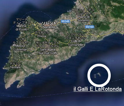上のグーグルマップにあるように、ソレント半島南、ティレニア海上に リ・ ガッリ島(Li Galli)があります。