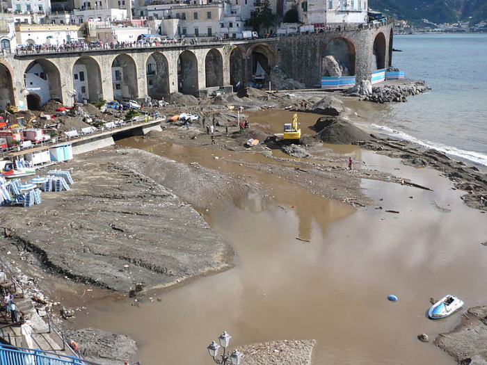 2013年アマルフィ海岸現地視察調査報告<125本 全体メニュー> 左はアマルフィの位置 アトラーニの紋章 イタリア国旗 ◆アトラーニの概要と歴史〜イタリアで最も小さなコムーネ〜 ![]() 撮影:青山貞一 Nikon Coolpix S8 2013-6-7 アトラーニははじめてですので、概要と歴史について紹介します。 アトラーニ( Atrani)は、イタリア共和国カンパニア州サレルノ県にある人口わずか約900人の基礎自治体(コムーネ)です。 峻険なアマルフィ海岸に位置する小さな町で、アマルフィの街の東隣にあります。面積は 0.12 km2 しかなく、イタリアで最も面積の小さなコムーネです。 ![]() アトラーニの人口推移 Source:Italiano Wikipedia アトラーニはサレルノ県北西部、アマルフィ海岸にある町の一つで西隣のアマルフィとは岬ひとつを隔てた関係にあります。両社の距離はわずか1km足らずです。徒歩でも10分程度と近接しています。一方、県都サレルノからは西南西へ約15kmあり、ソレントからは東へ約20kmとなります。さらに、州都ナポリからは東南へ約37kmの距離にあります。 アトラーニは、峻険なアマルフィ海岸の入江に築かれた街で、ティレニア海に面しています。 北にスカーラ、ラヴェッロといった高台にあるコムーネと隣接しており、町を見下ろす山中に散在するこれらのコムーネの集落とは、400m近い標高差があり、這い上がる道路によって両コムーネはつながっています。 アトラーニは、「イタリアの最も美しい村」クラブ加盟コムーネです。その街並みの美しさから、たびたび映画やコマーシャルの撮影に用いられています。 後述するようにアトラーニには以下の著名で歴史的に重要な教会がふたつあります。 アトラーニにあるサンタ・マリーア・マッダレーナ教会(La chiesa di Santa Maria Maddalena)は、13世紀建立され、海に面して建ち、バロック様式のファサードとマジョリカ式のドーム、鐘楼を持っています。 サン・サルバトーレ教会(La chiesa di San Salvatore de' Bireto)は10世紀建立されました。アマルフィ共和国のドージェは、この教会で権威の証となる帽子(地元の言葉ではbireto)を授けられることになっています。 |