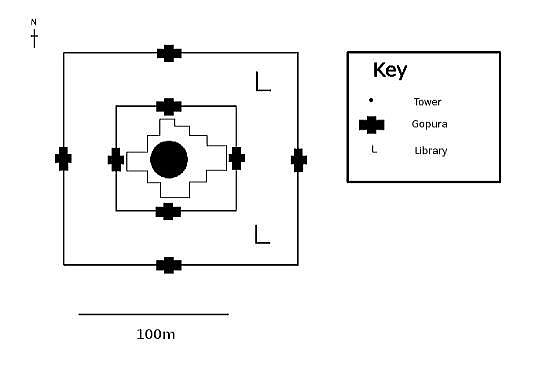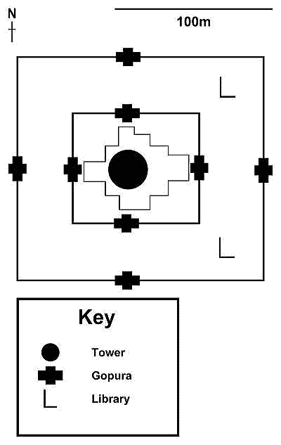 | アンコール遺跡全体目次 <アンコール・トム> アンコール・トム 南北門 東西門 王宮 ピミアナカス バイヨン1 バイヨン2 バイヨン3 バイヨン4 象のテラス1 象のテラス2 象のテラス3 ライ王のテラス1 ライ王のテラス2 ライ王のテラス3 プラサット・スゥル・プラット クリアン1 クリアン2 バプーオン1 バプーオン2 ◆バイヨン1 (Bayon) バイヨン (Bayon) は、カンボジアのアンコール遺跡を形成するヒンドゥーと仏教の混交寺院跡でありアンコール・トム全体敷地の中央にあります。 一般的にはバイヨンの呼び方で広く知られていますが、クメール語の発音ではバヨンの方が近いと言えます。バは「美しい」という意味で、ヨンは「塔」の意味を持っています。 ![]() アンコール遺跡・寺院地図 ![]() アンコール・トムとバイヨンの拡大図 下はグーグルマップの衛星写真で見たバイヨンです。アンコール・トムの中心にあり、正方形をしており、その中央に祠堂があります。また周囲に道路があります。 ![]() 出典:グーグルマップ 以下はバイヨンの写真ですが、ひときわ高い建築物が中央祠堂です。 ![]() バイヨン寺院 出典:グーグルマップ・ストリートビュー ![]() バイヨン寺院 Source:Wikimedia Commons 見る角度により中央祠堂の高さは変わります。以下の池田が写っている写真では、中央祠堂はひときわ高く見えます。 ![]() 撮影:随行学芸員 Nikon Coolpix S9900 ![]() バイヨン Source:Wikimedia Commons ◆バイヨンの構造 ・3次グラフィックスによるバイヨン寺院の展開 下の2枚はグーグルアースによる3次元グラフィックスによるバイヨン寺院の展開です。正方形の敷地の中に完全にシンメトリーに伽藍(祠堂、塔、門)が配置されています。方位は上が北です。 こうしてみることで、外観からは非常に複雑に見えるバイヨンの土地利用、施設配置、設計がよくわかります。 ![]() グーグルアースによる3次元グラフィックスによるバイヨン寺院の展開 ![]() グーグルアースによる3次元グラフィックスによるバイヨン寺院の展開 下は、バイヨン寺院の平面図です。以下の平面図の凡例から敷地の東側上下に、経蔵(Library)があることが分かります。 ![]() 全体図 Source:Wikimedia Commons ![]() 全体図 Source:Wikimedia Commons ◆バイヨンの特徴 バイヨンを特徴付けているのは、高くそびえる中央祠堂をはじめ、塔の4面に彫られている人面像(バイヨンの四面像)です。人面像は観世菩薩像を模しているというのが一般的な説です。 しかし戦士をあらわす葉飾り付きの冠を被っていることから、ジャヤーヴァルマン7世を神格化して偶像化したものであるとする説も存在します。また21世紀に入り、3次元CG化と解析によりヒンドゥー教の神々を表しているという説も出ました。この像はクメールの微笑みと呼ばれています。 また他のアンコール遺跡に残るクメール建築と同じく疑似アーチ構造を多用した建築構造をもっています。 建築全体ではおおむね三層に分かれており、高さ約43メートルといわれる中央祠堂を中心に、その第一層に二重の回廊が配置された構造となっています。 50近い塔に合わせて117個の人面像が残っています(これには異説があるようです)。人面像の高さは1.7〜2.2メートル程度で、個々にばらつきがあります。 第一層 第一層には東西南北全方向に門があります。中でも東門の近くには両側に池のあるテラスがあります。 第一回廊にもレリーフが残ります。アンコール・ワットにも存在する乳海攪拌のレリーフなどですが、保存状態があまり良くありません。 第二回廊(外回廊)は約160メートル×120メートル。正面は、東側を向いています。現在残るレリーフは、他のアンコール遺跡とは大きく異なった特徴を持っています。 第二回廊にはチャンパとの戦争の様子やバイヨン建設当時の市場の様子や狩の様子などがレリーフに彫り込まれており、庶民の暮らしを窺い知ることのできる貴重な資料にもなっています。 第二層 16の塔があり、どの塔にも前述の観音菩薩と思われる四面像が彫られています。第二層の回廊にはヒンドゥー教色の強いレリーフがデザインされています。 第三層 第三層はテラスとなっており、やはりどの塔にも観音菩薩とおぼしき四面像が彫られています。第三層の中央には過去にシヴァリンガが置かれていたとされていますが、後世の人が除去し、現在では上座部仏教(小乗仏教)の像が置かれています。 ![]() バイヨン寺院の人面像 Source:Wikimedia Commons ![]() バイヨン寺院 出典:グーグルマップ・ストリートビュー ![]() バイヨン寺院 出典:グーグルマップ・ストリートビュー ◆バイヨンの歴史 アンコール王朝の中興の祖と言われるジャヤーヴァルマン7世がチャンパに対する戦勝を記念して12世紀末ごろから造成に着手したと考えられており、石の積み方や材質が違うことなどから、多くの王によって徐々に建設されていったものであると推測されています。 当初は大乗仏教の寺院でしたが、後にアンコール王朝にヒンドゥー教が流入すると、寺院全体がヒンドゥ