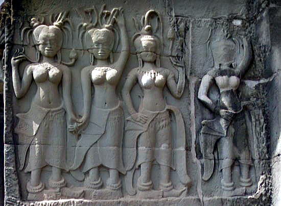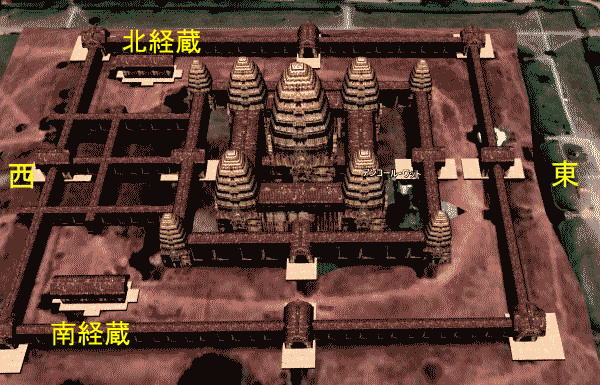 | アンコール遺跡全体目次 <アンコール・ワット> はじめに 東門 第1回廊 第2回廊 第3回廊、中央祠堂 十字回廊 千神経蔵 前庭 経蔵・西門 概要 歴史 修復活動 ◆南北千神経蔵(North and South Thousand God Library) ![]() アンコール・ワット平面全図 ![]() 南北経蔵の位置 十字回廊の南北それぞれ少し離れて北千神経蔵(North Thousand God Library)と南線神経蔵(South Thousand God Library)があります。この経蔵の外壁には多数のデヴァタが掘られています。 ここでは、デヴァタは一人ではなく、3人、4人、5人と並んで、手を取り合ったり腰に手を回したりしている構図が特徴となっています。どのデヴァタも口元に微笑みを湛えているところも見所です。 下の写真は北千神経蔵ですが、南千神経蔵も同じ形で入口はアンコール・ワットの南北中心線を向いています(上の3次元CG参照)。 なお、経蔵とは、仏教の聖典(仏典・三蔵)の一部であり、釈迦の教説である経をまとめたものです。また、建築物的には経蔵は、仏教寺院における建造物(伽藍)のひとつで、経典や仏教に関する書物を収蔵するものであり、経堂・経庫などとも称され、仏教寺院の主要伽藍である七堂伽藍のひとつに上げられることもあります。 ただし、英語では、単にLibraryと表記されます。 ![]() 北経蔵の外観 Source: Wikimedia Commons CC BY-SA 3.0, Link ![]() 北経蔵の階段 出典:グーグルマップ・ストリートビュー ![]() 北経蔵外観 出典:グーグルマップ・ストリートビュー 以下は南千神経蔵の外観写真です。 ![]() 南経蔵の外観 出典:グーグルマップ・ストリートビュー ![]() 南経蔵の内部 出典:グーグルマップ・ストリートビュー ![]() 南経蔵の入口 出典:グーグルマップ・ストリートビュー 下は南経蔵から第1回廊(右)と第2回廊(左)を撮影したものです。 ![]() 出典:グーグルマップ・ストリートビュー ◆外壁のデヴァタ(Devat) 下は北経蔵の外壁にあるデヴァタです。 ![]() 北経蔵の外壁にあるデヴァタ 出典:グーグルマップ・ストリートビュー ![]() 南経蔵の外壁にあるデヴァダ 出典:グーグルマップ・ストリートビュー ![]() 南経蔵の外壁にあるデヴァダ 出典:グーグルマップ・ストリートビュー ![]() 南経蔵の外壁にあるデヴァダ 出典:グーグルマップ・ストリートビュー ![]() 南経蔵の外壁にあるデヴァダ 出典:グーグルマップ・ストリートビュー ![]() 南経蔵の外壁にあるデヴァダ 出典:グーグルマップ・ストリートビュー 南千神経蔵のさらに南に、外部回廊(Outer Gallary)があります。その外壁にも以下のデヴァダがありました。 ![]() 南千神経蔵のさらに南側にある回廊にあったデヴァダ 出典:グーグルマップ・ストリートビュー 前庭につづく アンコール遺跡全体目次 |