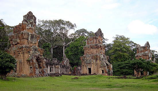 | アンコール遺跡全体目次 <アンコール・トム> アンコール・トム 南北門 東西門 王宮 ピミアナカス バイヨン1 バイヨン2 バイヨン3 バイヨン4 象のテラス1 象のテラス2 象のテラス3 ライ王のテラス1 ライ王のテラス2 ライ王のテラス3 プラサット・スゥル・プラット クリアン1 クリアン2 バプーオン1 バプーオン2 ◆プラサット・スゥル・プラット(Prasat Suor Prat) プラサット・スゥル・プラット(Prasat Suor Prat)は、カンボジアのシェムリアップ近郊に位置するアンコール遺跡群のうち、アンコール・トムにある象のテラスの前方に連なる12基の塔です。 王宮から勝利の門へと続く王道の前面にあり、12世紀末に、ジャヤーヴァルマン7世(在位1181-1220年)によって建造されたバイヨン様式の塔群であるとされますが、正確な年代は不明です。 「綱渡りの塔」(Towers of Cord Dancers)とも呼ばれ、それは祭典の際に、綱渡りをテラスにいる王に見せたという伝説によるが、これらの塔の目的についても諸説あります。 ![]() アンコール遺跡・寺院地図 ![]() プラサット・スゥル・プラット(Prasat Suor Prat) Source:Wikimedia Commons ![]() カンボジア、アンコールにあるアンコール・トムの中心部に位置する像のテラス の前に並ぶプラサット・スゥル・プラット Source:Wikimedia Commons ◆プラサット・スゥル・プラットの構成 12基の塔は王宮前広場の東側に南北にわたって配置されており、東の勝利の門に向かって続く道路の両側(南・北)にそれぞれ6基ずつ連なります。 道路のすぐ両脇の2基はほかの塔より東に後退した位置にあり、それぞれ道路側を正面とします。その2基を除いた南・北の各5基は広場側(西)が正面となります。また発掘により、これらの連なる塔群の西側のテラスが知られています。 これらの塔の呼称は、フランス極東学院 (EFEO) では北から順に No. 1、No. 2 としていましたが、日本国政府アンコール遺跡救済チーム (JSA) は、道路を基軸に、北群( Northern Group)の塔を北に向かって順に、N1、N2、N3、N4、N5、N6塔とし、同様に、南群(Southern Group)も道路側から順に、S1、S2、S3、S4、S5、S6塔としています。 N1-N3塔およびS1-S3塔の各背面にそれぞれ長方形の沐浴池(英: North Pond〈Srah Andong〉・ South Pond〈Srah Taset〉)があり、また、N4-N5塔とS4-S5塔の背面にはそれぞれ北クリアン・南クリアンがあります。 ![]() ![]() 塔の外観 Source:Wikimedia Commons ![]() カンボジア、シェムリアップ、アンコール・トム域内にあるプラサット・スゥル・プラット Source:Wikimedia Commons 塔は上下の基壇とその上の基座とともにラテライトで築かれ、開口部枠や破風(ペディメント)などの装飾部には砂岩が使用されています。 塔はすべて主塔1室構成で、正面入口に前室を備える方形の3層構造であるが、各層を隔てるような床面はなく、第1層の上部にのみ木製の天井が架けられたと考えられます。塔本体の両側および背面の3壁面に窓が大きく設けられ、前室の左右にも備えられたそれらは連子窓(れんじまど)でありました。 ![]() Dau truong 12 con giap Source:Wikimedia Commons クリアン1につづく アンコール遺跡全体目次 |