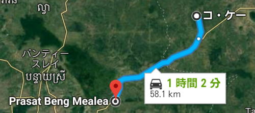 | アンコール遺跡全体目次 <北東部郊外の寺院・遺跡> バンテアイ・スレイ1 バンテアイ・スレイ2 バンテアイ・スレイ3 バンテアイ・スレイ4 バンテアイ・スレイ5 プノン・クーレン クバール・スピアン1 クバール・スピアン2 クバール・スピアン3 べンメリア1 べンメリア2 ベンメリア3 ベンメリア4 コーケル1 コーケル2 コーケル3 コーケル4 コーケル5 ◆コーケル(Koh Ker)の場所と行き方 コーケル(Koh Ker)遺跡はシェリムアップやアンコールワットから北東に約100〜120kmの位置にあります。 以下のグーグルマップは、シェムリアップ国際空港からコーケルまでを車で行く場合のルート、距離、時間です。距離は117km、時間は2時間29分となっています。 ![]() 出典:グーグルマップ 以下はベンメリア寺院遺跡からコーケル寺院遺跡に行く場合です。距離は58km、時間は1時間2分といずれも約半分となります。 ![]() 出典:グーグルマップ さらに、以下はバンテアイ・スレイ寺院遺跡からコーケル寺院遺跡に行く場合です。距離は106km、時間は1時間47分となります。 ![]() 出典:グーグルマップ ◆コーケル(Koh Ker)の概要 以下はコーケルを上空から撮影した衛星写真です。 ![]() 出典:グーグルマップ 上の写真をさらに拡大してみると、以下のようにコーケルには広大な敷地に多数の遺跡があることが分かります。 ![]() 出典:グーグルマップ さらに、以下はコーケル遺跡の詳細な伽藍の配置図です。 ![]() 出典:Wiki Voyage 下はこのコーケルを有名にしたピラミッド、プラサット・トム寺院です。 ![]() プラング(プラサット・トムの背後)、ジャヤバルマン4世(928〜941年) 時代の国寺、カンボジア、コーケル Source:Wikimedia Commons ![]() Vieコーケルの7段ピラミッドの眺め Source:Wikimedia Commons コーケル(Koh Ker)遺跡は、シェムリアップから北東へ120kmほどのところにあります。 約30の寺院遺跡や塔の遺跡からなる遺跡群で、アンコール王朝の中でもわずかな年数しか都として使われず、長い間ひっそりと放置されたままだったことから、幻の遺跡とも言われています。 奥地に建っているということもあり、手つかずのまま残された遺跡です。地雷撤去が進み、観光客も訪れることができるようになりました。しかし、まだアクセス手段が確立されていないので、観光客は少ない遺跡でもあります ![]() Un des nombreux temples du site de Koh Kerr Source:Wikimedia Commons ![]() カンボジア、コーケル遺跡にある多くの寺院の1つであるバンテアイ・ピチャン (Banteay Pichean)の見所 Source:Wikimedia Commons ![]() 出典:グーグルマップ・ストリートビュー ![]() PTrapeang Roseiの十字型の間取りをした大きな神殿 出典:グーグルマップ・ストリートビュー コーケル2につづく アンコール遺跡全体目次 |