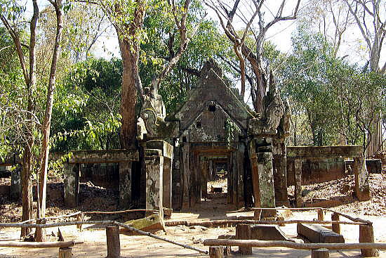 | アンコール遺跡全体目次 <北東部郊外の寺院・遺跡> バンテアイ・スレイ1 バンテアイ・スレイ2 バンテアイ・スレイ3 バンテアイ・スレイ4 バンテアイ・スレイ5 プノン・クーレン クバール・スピアン1 クバール・スピアン2 クバール・スピアン3 べンメリア1 べンメリア2 ベンメリア3 ベンメリア4 コーケル1 コーケル2 コーケル3 コーケル4 コーケル5 ◆コーケル(Koh Ker)3 このコーケルはシェムリアップから約2時間半の距離にあり、観光客用の施設にするべくは現在建設中です。なお、1992年以来、コーケルはユネスコの暫定世界遺産に登録されています。 ![]() Les vestiges du Prasat Krachap, un des temples du site de Koh Ker - Cambodge Source:Wikimedia Commons ![]() カンボジア、コーケルにあるリンガ寺院(プラサット・バラン) 928年から944年の間、ジャワーヴァルマン4世の時代、一時的にクメール帝国 の首都だった。 source:Wikimedia Commons ![]() カンボジア、コーケル遺跡のプラサット・ダムレイにある象の石像 この場所は、928年から944年の間、ジャワーヴァルマン4世の時代、一時的に クメール帝国の首都だった。 Source:Wikimedia Commons ◆コーケルの地理 コーケルは、Dangrek山脈の南斜面、南西部のKulen山脈(Phnom Kulen)、および東部のTbeng山(Phnom Tbeng、Tbeng Meanchey近く)の間に位置しています。 丘陵地の大部分はジャングルで覆われていますが、大部分の木は季節によって葉を落とします。 コーケル市はクメール帝国の最も重要な戦略的ルート上にありました。 アンコールとベンメリアからコーケーへと続く道は、プラサート・プレア・ビヘア、そしてそこからタイのピマーイ、さらにラオスのワット・プーへと続いていました。 9世紀から10世紀にかけては、この地に給水を確保するために多数の貯水槽や運河が建設されました。 最近では、30から40メートル(98から131フィート)メートルの深さから水が汲み上げられています。 ◆コーケルの歴史 10世紀前半、アンコール朝のジャヤーヴァルマン4世によってチョック・ガルギャー(コーケー)は建てられました。それまでの都ヤショダラプラ(アンコール)の北東約120キロに位置しています。 ジャヤヴァルマンとその息子ハルシャヴァルマン2世(在位:941年 - 944年)の治世までは都でしたが、944年に甥のラジェンドラヴァルマン2世に王位を簒奪されると、10世紀半ばには再びヤショダラプラ(アンコール)に都が戻されました。 ◆コーケルスタイル 表現力豊かで美しい彫刻は、現在コーケルの敷地に残っていません。それらの多くは盗まれ、現在美術館や個人のコレクションにもなっています。略奪者からの盗難を守るため、いくつかの彫像が政府組織によって保護され、コーケルの多くの傑作彫刻は、プノンペンの国立博物館のコレクションとして所蔵されています。 サザビーズが神話上のクメール帝国の戦士の像をオークションにかけ売ろうとした2011年後半、この辺鄙なコーケルは世界中のメディアの注目を集めました。 2012年3月、米国政府とカンボジア政府は、コーケルから不法に連れ去られた像を把握するため法廷に文書を提出しました。カリフォルニア州パサデナのノートン・サイモン美術館にも展示されている双子の像がコーケル遺跡に関係しています。 ◆古代都市コーケル 古代都市の中心は、東バライの北東にありました。 ジャヤーヴァルマン4世の支配下で、少なくとも1万人の住民がそこに住んでいたと銘文に記されています。 過去、研究者たちは、一辺の長さが1.2 km(1,312ヤード)の正方形の壁が町を守っていると考えていました。しかし、新しい研究によると、コー・ケルのこの部分に見られる線状構造は、古代の運河の堤防であることが分かっています。クメール時代の木造建築物は発見されていません。 コーケルでは、ラテライト、砂岩、レンガが建材として使用されました。優れた品質のラテライトと砂岩がコーケル地域で大量に採石されたため、石のコーケルへの運搬は問題にならなりませんでした。 製造されたレンガは小さく、規則的で非常に堅実でした。未知の処方の有機モルタルの薄層には、おそらく何らかの形で植物の樹液を使用しています。 2000年以上経っても、コーケルのれんが造りの聖域は、ラテライトよりもはるかに良い状態にあります。 コーケルのいくつかの寺院の屋根は木造で、タイルで覆われていました。これらの記念碑には、木製の桁用の穴があります。主要な聖域(寺院群のプラサートトム/プラン)は、古代都市の真ん中には位置していませんでした。 ◆ラハル(貯水池(バライ) ラハル(Rahal)と呼ばれる巨大なバライ(Baray)は、古代の首都コーケルの遺跡で最大の物です。 その長さは約1,200 m(1,312ヤード)、Breathは約560 m(612ヤード)です。 水槽はラテライトのステップで覆われた3つのダムを持っています。 ラハルの向きは、アンコールの巨大な貯水池のように東から西への方向ではなく、北15°西の方向に向いています。コーケルの最も重要な記念碑が同じ方向を向いているため、バライが最
