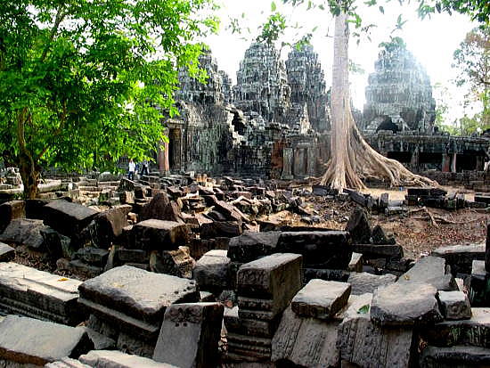 | アンコール遺跡全体目次 <東部の寺院・遺跡1> スピアン・トマ タ・ケウ1 タ・ケウ2 バンテアイ・サムレ1 バンテアイ・サムレ2 タ・プローム1 タ・プローム2 スラ・スラン バンテアイ・クデイ1 バンテアイ・クデイ2 バンテアイ・クデイ3 ◆バンテアイ・クデイ1(Prasat Banteay Kdei) バンテアイ・クデイは、多くの アンコール寺院の1つであり、400平方キロメートル(150平方マイル)のアンコール遺跡公園内に位置します。 クメール王朝時代におけるアンコールの古代都市はトンレサップからクーレン丘陵にかけて広がる1,000平方キロメートルの広大な領域にわたっています。 ![]() アンコール遺跡・寺院地図 この寺院はタ・プロームの東の塔門(ゴープラ、gopura)より600メートルとなる経路沿いに通じています。この経路はバンテアイ・クデイの西塔門入口につながっています。寺院はアンコール・トムの東3キロメートルにあります。 ![]() 出典:グーグルマップ やはり、バンテアイ・クデイも敷地は正方形であり、その周りは濠となっています。 ![]() バンテアイ・クデイ(Prasat Banteay Kdei) 出典:グーグルマップ衛星写真 ![]() カンボジア、アンコール、バンテアイ・クデイ寺院 Source:Wikimedia Commons バンテアイ・クデイ(Prasat Banteay Kdei)は、カンボジアのアンコール遺跡において、「チャンバ族の砦」("Citadel of Chambers")、または「僧房の砦」( "Citadel of Monks' cells")として知られる仏教寺院です。 この寺院はタ・プロームの南東、アンコール・トムの東に位置します。12世紀半ばから13世紀初頭のジャヤーヴァルマン7世(在位1181年-1218年頃[8]または1219年ないし1220年頃、死後 "Maha paramasangata pada" と称されました)の統治中に築かれたものです。 バイヨン様式で、構成はタ・プロームやプリヤ・カーンに似ていますが、複雑ではなく、より小さい寺院です。その構造物は2重の周壁に囲まれており、そして塔門から2重の中央回廊を構成し、東面前方には前柱殿があります。 この仏教寺院複合体は、これまで不完全な建設およびその建築に質の悪い砂岩が使われていたために荒廃し、現在修復を受けています。バンテアイ・クデイは1960年代まで何世紀にもわたってさまざまな間隔で僧侶により占有されていました。 ![]() バンテアイ・クデイ(Prasat Banteay Kdei) Source:Wikimedia Commons ![]() バンテアイ・クデイ(Prasat Banteay Kdei) Source:Wikimedia Commons ![]() バンテアイ・クデイ(Banteay Kdei)は、カンボジアのアンコールにある寺院です。それはタプロームの南東とアンコールトムの東に位置しています。 ジャヤバルマン7世の治世中の12世紀後半から13世紀初頭に建てられたこの寺院は、バイヨン様式の仏教寺院で、タ・プロームやプレア・カーン(Preah Khan)と似ていますが、それほど複雑ではありません。その構造は2つの連続した囲い壁の中に含まれており、そこから塔が出現する2つの同心円のギャラリーから成り、その前には回廊があります。この修道院の複合体は現在、不完全な構造と質 の悪い砂岩が原因で老朽化しています。バンテアイ・クデイは何世紀にもわたって様々な間隔で僧侶によって占領されてきましたが、碑文の石は発見されたことがないので、神殿が誰に捧げられているのかは不明です。 Source:Wikimedia Commons 地理 ![]() バンテアイ・クデイ(Prasat Banteay Kdei)の位置 Source:Wikimedia Commons 歴史 クメール王朝は802年から1431年の長きにわたっており、当初12世紀末まではヒンドゥー教徒の敬虔な信仰のもと、その後は仏教徒の厚い信奉のもとにありました。その時代に壮大な寺院が建造されるようになり、1191年まではスーリヤヴァルマン2世の統治中において、その後12-13世紀にはジャヤーヴァルマン7世のもとにおいて頂点に達しました。 バンテアイ・クデイを含め、多くの仏教寺院が12世紀半ばから13世紀初頭に構築されました。ジャヤーヴァルマン7世は多くの寺院を建造した功績が評価されましたが、彼はまた社会および他の職務を犠牲にした途方もない寺院の建築計画における散財が非難されています。 ジャヤーヴァルマン7世は聖観音菩薩を主に崇める仏教寺院を構築しましたこの寺院は、ジャヤーヴァルマン7世による同時期の近隣にあるタ・プロームやプリヤ・カーン寺院の様式と同様に構築されたが、規模は小さく、ラージェンドラヴァルマン2世(英語版)により建てられた10世紀の寺院の位置に、仏教僧院複合体として築かれました。いくつかの小さな碑文は、ジャヤーヴァルマン7世および王室建築家 Kavindrarimathana により本寺院が建造されたことを証明しています。 ジャヤーヴァルマン7世は、アンコールに攻め入り徹底的に破壊し支配したチャム族を倒した後、55歳で政権を握りました。彼の「驚異的な活動」は、その廃墟からカンボジアの復興をもたらしました。 ジャヤーヴァルマン7世はまず第一にアンコール・トムにおいて首都を再建し、「偉大な建造者」と呼ばれました。彼は多くの寺院を建設する役目を果たし、それはバンテアイ・クデイとは別に、バイヨン、プリ