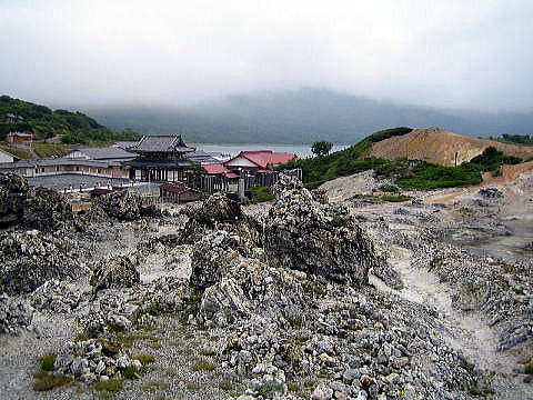 | ◆恐山 、下北半島の中央部に位置する外輪山、霊場である。また、霊場内に数種類の温泉が湧き、湯治場としても利用されている。下北半島国定公園に指定されている。標高878m。 恐山(おそれざん、おそれやま)は恐山は、カルデラ湖である宇曽利湖(うそりこ)を中心とした外輪山の総称である。外輪山は釜臥山、大尽山、小尽山、北国山、屏風山、剣の山、地蔵山、鶏頭山の八峰。「恐山」という名称の単独峰はない。火山岩に覆われた「地獄」と呼ばれる風景と、美しい宇曽利湖の「極楽浜」との対比が特徴である。 寺名は菩提寺、本坊はむつ市田名部にある曹洞宗円通寺である。本尊は地蔵菩薩。恐山は、地蔵信仰を背景にした死者への供養の場として知られる。下北地方では「人は死ねば(魂は)お山(恐山)さ行ぐ」と言い伝えられている。 ![]() 出典:Wikipedia ![]() 出典:Wikipedia |