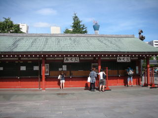 雷門から宝蔵門に至る表参道の両側にはみやげ物、菓子などを売る商店が立ち並び、「仲見世」と呼ばれている。商店は東側に54店、西側に35店を数える。寺院建築風の外観を持つ店舗は、関東大震災による被災後、大正14年(1925年)に鉄筋コンクリート造で再建されたものである。