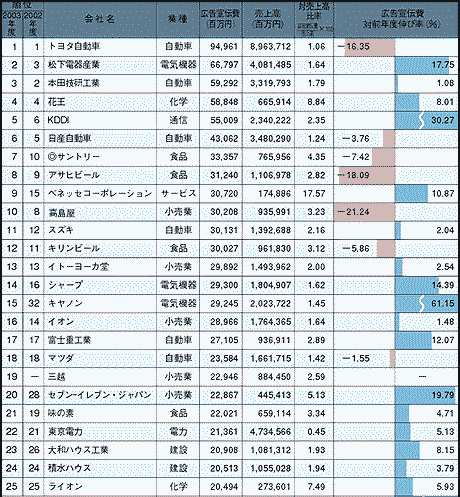 過日、青山ゼミである学生が、今の日本のテレビ局や新聞社などの大メディアが、広告主、スポンサーの意向ばかりに気を遣い、報道機関としての社会的役割を果たしていないかについて、すばらしい研究発表をしてくれた。 私の大学では、卒業研究より一年前に事例研究といって、それまでの単位が70単位以上あると、3学年で研究室に配属され、卒業研究の前哨戦が行えることになっている。私の学部(環境情報学部)では90%以上の学生が3年で研究室に配属となる。 ところで彼(3年生)の研究テーマは、「報道と広告」である。 その学生は、日本の上場など巨大企業の広告費を調べ、ランキング化し、上位20社をリスト化した。さらに、個別具体に自動車のリコール事件をとりあげ、大メディアがスポンサーとの関係でどのようにその事件を扱ったかについて調べた。 すなわち同じようなリコール事故を起こした自動車メーカーに、大マスコミがM自動車については大きく取り上げながら、T自動車についてはリコール数がMよりはるかに大きいのに、あまり記事として取り上げていない実態を調べゼミで報告したのである。 もちろん、この種のこと、すなわち大メディアの収入源である一大広告主に対し、やたら気遣う大メディアの姿勢は、なにも自動車(たとえばトヨタ)に限ったものではない。電力会社(たとえば東京電力)、家電(パナソニック)、タバコ(JT)などの分野で以前から顕著である。 たとえば、スウェーデンの原発事故やイギリスのセラフィールド核燃料再処理工場でのプルトニウム流出などの巨大事故を日本の報道機関がほとんど報道しないことは有名である。 http://eritokyo.jp/independent/today-column-nuclear.htm 以下は筆者が調査した2003年度から2006年度の有力企業の広告宣伝費ランキングである。トヨタ、松下電器産業(現、パナソニック)、本田技研、KDDI、花王、東京電力、キャノンなどが上位の常連であることが分かる。 なお、トヨタ自動車の年間広告宣伝費は、2005年以降、実に1000億円を超えていることが分かる。これらの広告宣伝費は、電通、博報堂などの広告宣伝会社を通じて、テレビ、新聞各社にばらまかれることになる。ちなみに2006年度の上位10社の広告宣伝費の合計は6600億円にも達する。 2006年度の有力企業の広告宣伝費 ![]() 出典:日経広告研究所資料より 2005年度の有力企業の広告宣伝費 ![]() 出典:日経広告手帳より 2004年度の有力企業の広告宣伝費 ![]() 出典:日経広告手帳より 2003年度の有力企業の広告宣伝費 ![]() 出典:日経広告手帳より 次に私が実際に経験した具体例について、広告収入が激減し、ご承知のように赤字を計上しているテレビ朝日を例に示してみたい。 その1 東京湾アクアライン開通時の事例 今から11年前の1997年、川崎から木更津まで東京湾を横断する史上最大の土木系公共事業、東京湾アクアラインなる道路・橋梁・トンネル事業が竣工、開通したときのことである。 テレビ朝日スーパーJチャンネルから、アクアラインの開通により、どんな影響・効果があるのか、について専門的な取材が舞い込んだ。 当時、私が代表を務める研究所が環境庁(現在、環境省)からの委託事業で「東京湾岸地域大気環境の将来予測」などの調査研究をしていたこともあり、私以下の主旨のコメントをした。 すなわち、東京湾アクアラインが開通すると首都圏の骨格が大きくなり、千葉に大気汚染がスプロール(拡大)する可能性が大きいという主旨のコメントを出したのでる。 しかし、夕方の番組をみて仰天、私が結構長くコメントした内容の一部分だけを切り出して、東京湾アクアラインの開通により、東京都の大気汚染が改善するというコメントとなって放映されたのである。私にとってはまさに「情報操作による世論誘導」以外の何物でもない。 そのニュースを見た研究所の同僚だけでなく、何人かの友人がわざわざ電話してきたほどであった。 後日談として分かったのは、史上最大の公共事業費(約1兆4,409億円 )を投入し竣工した東京湾アクアラインの事業主である日本道路公団(当時)への気遣いでコメントがねじ曲げられた可能性を局の知り合いから聞かされた。 当然のこととして、私はテレビ朝日に猛烈に抗議し、テレビ朝日から謝罪も来たが、私のコメントが勝手に編集され、180度ことなった主旨に替えられ大きなショックを受けた。 テレビ、新聞の取材を受けた場合、この種のことは多かれ少なかれ、結構あるのだが、180度発言の主旨が曲げられたのはない。 その2 長野県の事例 2002年、現在参議院議員をしている田中康夫氏が、長野県知事に再選されたときのことである。(ちなみに田中氏が最初に長野県知事に当選したのは2000年) 当時、知人のテレビ朝日の幹部が長野朝日放送(ABN)のC氏が幹部として着任した。 私は研究所の同僚である池田こみちさんが長野県環境審議会の委員に就任したこと、それに別件で県庁に行く用事があったこともあり長野に池田さんと一緒に出向くことになった。 せっかく長