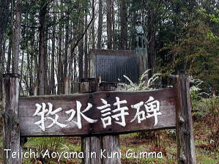 「花楽の里」で一服した後、六合村の暮坂峠を越え中之条町に入る直前に、またしても若山牧水の碑があった。