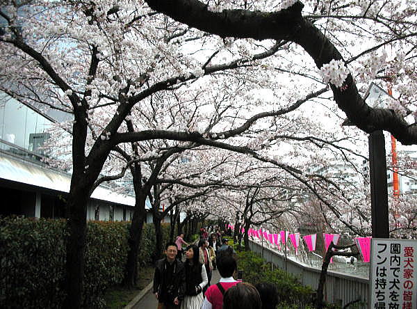 この後、目黒雅叙園近くの橋でUターン折り返し、目黒川を五反田方面に向かいます。 下の写真は目黒雅叙園近く橋のうえから反対側、すなわち目黒通り、中目黒側を撮影したものです。曇天なのが残念ですが、サクラはまさに満開です。遠くに見える橋の上を目黒通りが通っています。目黒通り(正式には東京都道312号白金台町等々力線)が走る橋の名は、目黒新橋のようです。 ![]() 撮影:青山貞一 Nikon Coolpix S8 2015-3-29 下は上流の橋(目黒通りが走る橋)の上から目黒雅叙園方向、すなわちこれから歩いて五反田に行く側を撮影したものです。天気が冴えませんが、ここはサクラ撮影のビスタポイントです。 ![]() 撮影:青山貞一 Nikon Coolpix S8 この後、道路は、目黒川緑道(品川区内)で来た道の対岸を五反田、大崎方面にトレッキングします。下の写真の背景に写っているのは目黒雅叙園です。 ![]() 背景に写っているのは目黒雅叙園 撮影:青山貞一 Nikon Coolpix S8 2015-3-29 このあたりの緑道は、まさにサクラのトンネルとなっています。右側が目黒川、左側が目黒雅叙園です。 ![]() 撮影:青山貞一 Nikon Coolpix S8 2015-3-29 下はマンション雅叙苑の前の緑道です。ただし、このあたりは半分がマンション雅叙苑の私道が含まれ、自家用車の駐車場に通じるアクセス道路となっています。 ![]() 撮影:青山貞一 Nikon Coolpix S8 2015-3-29 緑道から目黒川の対岸を見た写真です。東京でもこのあたりはヒートアイランド現状も加わって、サクラは満開状態となっていました。 ![]() 撮影:青山貞一 Nikon Coolpix S8 2015-3-29 この後、後述します「花房山」の麓を流れる目黒川沿いを通り、五反田に向かいます。 五反田周辺で一旦、緑道そしてサクラ並木は無くなります。 ここで全国的にはあまり知られていない五反田について解説します。