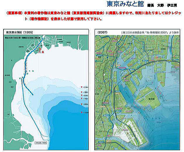 御殿山は歌川広重や葛飾北斎に何度も描かれていますが、下は安藤広重の『御殿山花盛』です。 ![]() 安藤広重の『御殿山花盛』 出典:Wikipedia 下は歌川広重の『御殿山花見』(1840年)です。 ![]() 歌川広重の『御殿山花見』(1840年) 出典:Wikipedia 下は、鳥文斎栄之の『御殿山花見』(1791年 - 1797年)」です。 ![]() 鳥文斎栄之『御殿山花見』(1791年 - 1797年)」 出典:Wikipedia なお、江戸時代、御殿山のすぐ前に東京湾があったのですが、その後の埋め立てで大幅に地形が変わっています。 下は「東京みなと館」館長、大野伊三男氏が書かれた『東京港埋立のあゆみ』にある東京湾の埋め立ての経緯を示した地図ですが、左は1905年時点の東京湾、右はほぼ現在の東京湾です。 御殿山の地先がすぐ東京湾の海面であることが分かります。現在は埋め立て地の上に東京入管事務所、その南に八潮ニュータウン、さらにその南には巨大に埋め立てられ羽田空港が開発されています。 ![]() 出典:東京みなと館」館長、大野伊三男氏が書かれた『東京港埋立のあゆみ』、東京都港湾局 つづく |