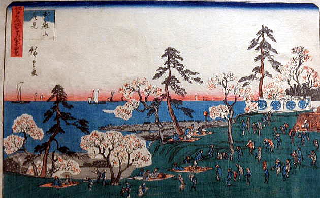 下は、葛飾北斎の「東海道品川御殿山ノ不二」(1832年)ですが、ここに描かれているサクラの名所は、まさに権現山公園辺りを示すものと推察されます。 ![]() 葛飾北斎『富嶽三十六景』の「東海道品川御殿山ノ不二」(1832年) また下の歌川広重の『御殿山花見』(1840年)の絵も、同じように、権現山公園辺りを示しているものと推察できます。 ![]() 歌川広重の『御殿山花見』(1840年) 出典:Wikipedia つづく |