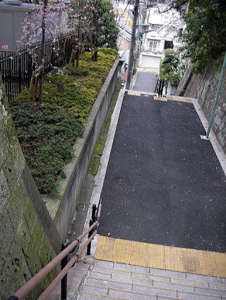 下は大使館の玄関です。 ![]() 撮影:青山貞一 Nikon Coolpix S8 2015-3-29 下は在日ブルネイ大使の住宅です。 ![]() 撮影:青山貞一 Nikon Coolpix S8 2015-3-29 ブルネイ大使館の前の道を奥に向かって行くと、ギリシャのエーゲ海みたいな白い色の階段となりました。 島津山のこのあたりは、非常に急な斜面が多く、坂道では対応しきれないため、あちこちに階段があります。 ![]() 撮影:青山貞一 Nikon Coolpix S8 2015-3-29 階段を降りたあたりは東五反田3丁目となります。 ![]() 撮影:青山貞一 Nikon Coolpix S8 2015-3-29 ここでやっと、サクラにであいました。しかし、これも総合設計制度などで超高層ビルを建てることでつくられた公共空地の一角にサクラが植えられているだけであり、まとまったサクラの並木にはなっていません。 ![]() 撮影:青山貞一 Nikon Coolpix S8 2015-3-29 ![]() 撮影:青山貞一 Nikon Coolpix S8 2015-3-29 この辺りも階段が多く、下の写真のように40段以上の階段がありました。なかなか今の東京ではこれだけの階段にはお目にかかれません。さすが島津山と、感心してしまいました。 ![]() 撮影:青山貞一 Nikon Coolpix S8 2015-3-29 そうこうしているうちに、行く先の清泉女子大学がある島津山が見えてきました。下の写真にあるこんもりとした緑が島津山のシンボルとなる清泉女子大学がある森です。 ![]() 撮影:青山貞一 Nikon Coolpix S8 2015-3-29 ◆清泉女子大学 以下は清泉女子大学の正門前です。 ![]() 撮影:青山貞一 Nikon Coolpix S8 2015-3-29
