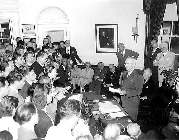 ナチス・ドイツ降伏後の1945年(昭和20年)7月17日から8月2日にかけ、ベルリン郊外ポツダムにおいて、米国、英国、ソ連の3カ国の首脳(アメリカ合衆国大統領ハリー・S・トルーマン、イギリスの首相ウィンストン・チャーチル、ソビエト連邦共産党書記長ヨシフ・スターリン)が集まり、第二次世界大戦の戦後処理について話し合われた(ポツダム会談)。 ポツダム宣言は、この会談の期間中、米国のトルーマン大統領、イギリスのチャーチル首相と中華民国の蒋介石国民政府主席の共同声明として発表されたものである。 ![]() 1945年8月14日、日本のポツダム宣言受諾を発表するトルーマン 出典:Wikipedia ただし宣言文の大部分はアメリカによって作成され、イギリスが若干の修正を行なったものであり、中華民国を含む他の連合国は内容に関与していない。英国代表として会談に出席していたチャーチル首相は当時帰国しており、蒋介石を含む中華民国のメンバーはそもそも会談に参加していなかったため、トルーマンが自身を含めた3人分の署名を行った(蒋介石とは無線で了承を得て署名した)。 1945年(昭和20年)8月14日、日本政府は宣言の受諾を駐スイス及びスウェーデンの日本公使館経由で連合国側に通告、このことは翌8月15日に国民に発表された(玉音放送)。 9月2日、東京湾内に停泊する米戦艦ミズーリの甲板で日本政府全権の重光葵と大本営(日本軍)全権の梅津美治郎及び連合各国代表が、宣言の条項の誠実な履行等を定めた降伏文書(休戦協定)に調印した。これにより、宣言ははじめて外交文書として固定された。 下は、現代語訳です。 ◆日本の降伏のための定義および規約 1945年7月26日、ポツダムにおける宣言 1. 我々(合衆国大統領、中華民国政府主席、及び英国総理大臣)は、我々の数億の国民を代表し協議の上、日本国に対し戦争を終結する機会を与えることで一致した。 2. 3ヶ国の軍隊は増強を受け、日本に最後の打撃を加える用意を既に整えた。この軍事力は、日本国の抵抗が止まるまで、同国に対する戦争を遂行する一切の連合国の決意により支持され且つ鼓舞される。 3. 世界の自由な人民に支持されたこの軍事力行使は、ナチス・ドイツに対して適用された場合にドイツとドイツ軍に完全に破壊をもたらしたことが示すように、日本と日本軍が完全に壊滅することを意味する。 4. 日本が、無分別な打算により自国を滅亡の淵に追い詰めた軍国主義者の指導を引き続き受けるか、それとも理性の道を歩むかを選ぶべき時が到来したのだ。 5. 我々の条件は以下の条文で示すとおりであり、これについては譲歩せず、我々がここから外れることも又ない。執行の遅れは認めない。 6. 日本国民を欺いて世界征服に乗り出す過ちを犯させた勢力を除去する。無責任な軍国主義が世界から駆逐されるまでは、平和と安全と正義の新秩序も現れ得ないからである。 7. 第6条の新秩序が確立され、戦争能力が失われたことが確認される時までは、我々の指示する基本的目的の達成を確保するため、日本国領域内の諸地点は占領されるべきものとする。 8. カイロ宣言の条項は履行されるべきであり、又日本国の主権は本州、北海道、九州及び四国ならびに我々の決定する諸小島に限られなければならない。 9. 日本軍は武装解除された後、各自の家庭に帰り平和・生産的に生活出来る機会を与えられる。 10. 我々の意志は日本人を民族として奴隷化しまた日本国民を滅亡させようとするものではないが、日本における捕虜虐待を含む一切の戦争犯罪人は処罰されるべきである。日本政府は日本国国民における民主主義的傾向の復活を強化し、これを妨げるあらゆる障碍は排除するべきであり、言論、宗教及び思想の自由並びに基本的人権の尊重は確立されるべきである。 11. 日本は経済復興し、課された賠償の義務を履行するための生産手段、戦争と再軍備に関わらないものが保有出来る。また将来的には国際貿易に復帰が許可される。 12. 日本国国民が自由に表明した意志による平和的傾向の責任ある政府の樹立を求める。この項目並びにすでに記載した条件が達成された場合に占領軍は撤退するべきである。 13. 我々は日本政府が全日本軍の即時無条件降伏を宣言し、またその行動について日本政府が十分に保障することを求める。これ以外の選択肢は迅速且つ完全なる壊滅があるのみである。 |