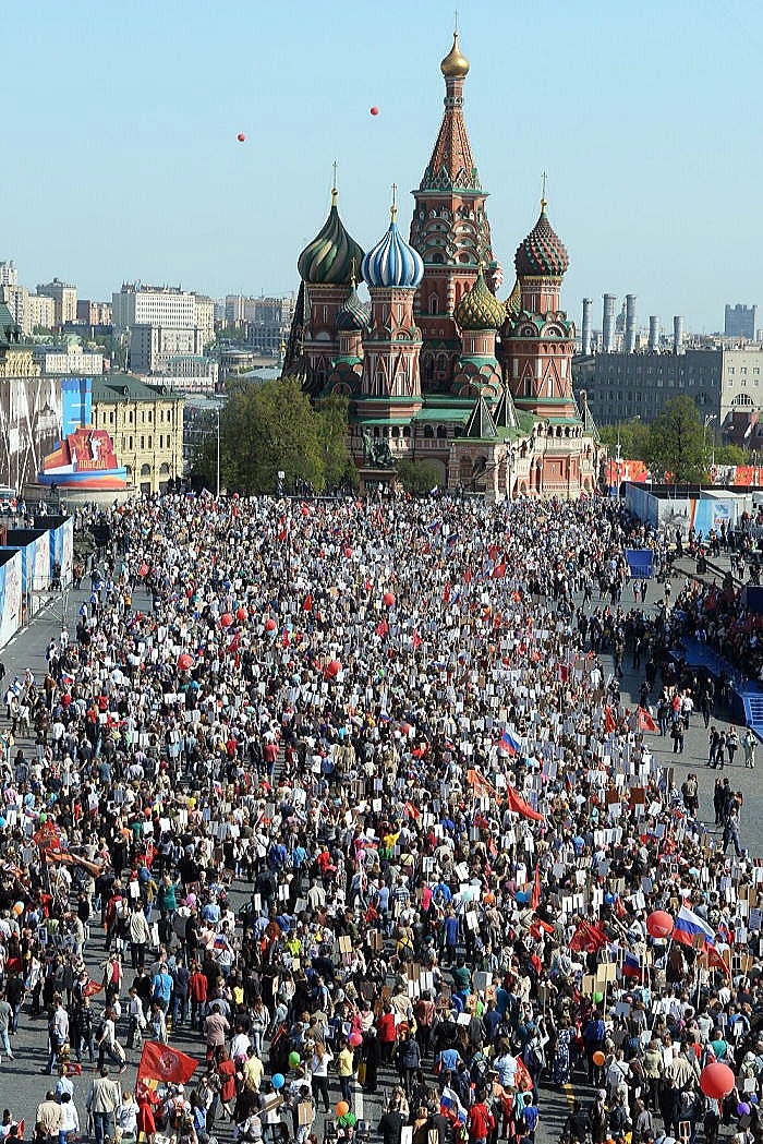 大衆行動「不滅の連隊」に参加するため、モスクワの中心部に 50万人以上の人達が集まった。