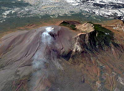 | グーグルアースで3次元展開した浅間山 作成:青山貞一 | |||