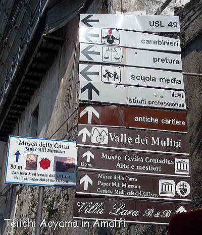 ●2008年2月23日(土) 午後 アマルフィはイタリア語でCostiera Amalfitana とよばれ、ヴェニスなど海洋に面するイタリアの諸都市同様,、重要な観光地となっている。 そのアマルフィ海岸にはポジターノ、ラベッロなどすばらしい小さな海洋都市があり、あわせてユネスコの世界遺産に「アマルフィ海岸」として登録されている。 アマルフィ旧市街の一角に泉水があった。 この泉水、実は「アドリア海の真珠」とよばれるクロアチアのドブロブニクで見かけた泉水によく似ている。 そうだ、そういえばドブロブニクの泉水はイタリアから技術者をドブロブニクに呼びよせて造らせたと言っていた。 そうだ、こちらが本場物なのである。 ![]() アマルフィ旧市街の泉水の前で、 撮影:青山貞一、Nikon CoolPix S10 ![]() アマルフィ旧市街の泉水 撮影:青山貞一、Nikon CoolPix S10 海の後は厳しい岩山ばかりと思えるアマルフィには、中世に7万人ものひとびとが居住したという。 そのアマルフィには今でも険しい岩山の裾野に下のような高密度な石造りの住宅で多くの人々が生活している。そこには生活の知恵とでもいえるさまざまな工夫を見て取れる。 ![]() アマルフィの町並み 撮影:青山貞一、Nikon CoolPix S10 何と言ってもアマルフィは岩山だらけだ。下の写真のように住宅の裏を見ると黒い岩山(モンテネグロ)がそびえ立っている。 ![]() 典型的なアマルフィの町並み。背後に険しい黒い岩山がある 撮影:青山貞一、Nikon CoolPix S10 アマフルィの特産品には、結婚式の招待状、名刺、上等な筆記用紙に使われる自家製紙がある。今回の旅では行けなかったが、自家製の紙の博物館がある。下の標識の左にMuseo della Carta(Paper Mill Museum)とあるのがそれである。紙の博物館も世界遺産の一部であるようだ。 それにしても、イタリアはデザインの国。道ばたの標識ひとつにしても、すばらしい! ![]() アマルフィで見た掲示板、観光案内。あか抜けている 撮影:青山貞一、Nikon CoolPix S10 所狭しと建っている共同住宅だが、なぜか雑然とした中にもアマルフィ流が見て取れる。。 ![]() アマルフィの集合住宅 撮影:青山貞一、Nikon CoolPix S10 上の集合住宅がある周辺や背景はこんな感じ。険しい岩山の谷間にあることが分かる。 ![]() ここでもふと背後には険しい山々が 撮影:青山貞一、Nikon CoolPix S10 なぜか、住宅地から沢山の高校生いや中学生とおぼしき子供達が出てきた。イタリアの他都市からの遠足(総合学習)であろうか? ![]() 撮影:青山貞一、Nikon CoolPix S10 実はアマルフィ旧市街にはヴェネチアのような狭い猫道がたくさんある。 ヴェネチアと異なるのは、アマルフィが急峻な坂のまちであることだ。 同じ猫道でも下の写真のように、険しい階段となっている。お年寄りは毎日、この急峻な路地を買い物袋を下げて行き来している。そのせいかイタリアのおばあさんやおじいさんはなにしろ元気がよいのだ。 ![]() アマルフィ旧市街の裏道(猫道) 撮影:青山貞一、Nikon CoolPix S10 実はアマルフィ旧市街には、おみやげ屋さんなどがたくさんあるメインストリートとは別に、下の写真のようなバイパスがたくさんある。しかもそのバイパスの途中にギャラリーやお店もあるから不思議だ。 ![]() アマルフィ旧市街のバイパス 撮影:青山貞一、Nikon CoolPix S10 ![]() アマルフィ旧市街のバイパス 撮影:青山貞一、Nikon CoolPix S10 ![]() アマルフィ旧市街のバイパス 撮影:青山貞一、Nikon CoolPix S10 さすが、かつての海洋王国。 アマルフィにはあちこちに海の幸をふんだんにつかった海鮮レストランがある。 ![]() 海鮮料理のレストランの案内看板 撮影:青山貞一、Nikon CoolPix S10 アマルフィの特産品には、レモン、オレンジ、ブドウ、オリーブなどの果実がある。さらにレモンでつくったリキュールなどが有名である。 下の写真は地場の野菜を売る旧市街近くのお店。 ![]() 果物やレモンリキュールを売る店 撮影:青山貞一、Nikon CoolPix S10 ピメントやズッキーニもここでは安い。 ![]() 新鮮な野菜が売られていた 撮影:青山貞一、Nikon CoolPix S10