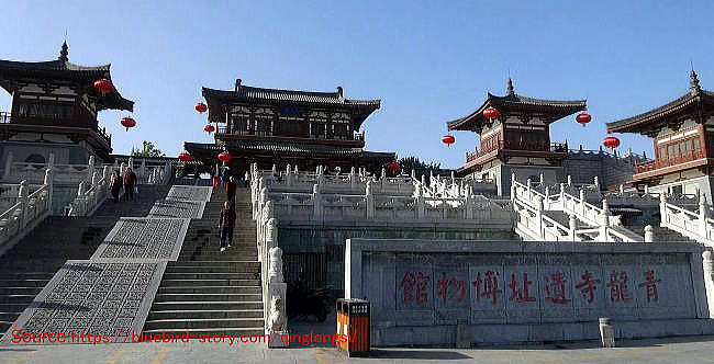 | 総合メニュー 青龍寺 青龍寺空海1 青龍寺空海2 青龍寺空海3 青龍寺空海4 青龍寺(百度百科1) 青龍寺(百度百科2) 青龍寺(百度百科3) 青龍寺博物館(百度百科1) 青龍寺博物館(百度百科2) 視察1 視察2 視察3 88か所 本稿の解説文は、現地調査や現地入手資料、パンフなどに基づく解説に加え、百度百科中国版から日本への翻訳、Wikipedia 日本語版を使用しています。また写真は現地撮影以外に百度百科、Wikimedlia Commons、トリップアドバイザーさらに地図はグーグルマップ、グーグルストリートビュー、百度地図などを使用しています。その他の引用に際しては、その都度引用名を記しています 次は中国西安市(長安市)の青龍寺です。 ◆西安(Xi'an 中国西安市) ![]() ![]() 出典;青龍寺でいただいたパンフレット より ◆青龍寺1 青龍寺は大雁塔の東北東の約3km、地下鉄(紫色)大雁塔駅の東側次の駅下車となります。大慈恩寺は大雁塔の境内にあります。 ![]() ![]() 出典:グーグルマップ 下の写真にある青龍寺(せいりゅうじ,しょうりゅうじ)は、中国陝西省の古都、西安市南郊の雁塔区鉄炉廟村にある仏教寺院であり、弘法大師空海ゆかりの寺として知られています。その故地は、唐朝の都、長安城においては、左街の新昌坊に当たる場所でした。 ![]() 唐の時代、西安空海が学んだ西安の青龍寺 出典:https://bluebird-story.com/qinglongsi/ ![]() 撮影:青山貞一 Nikon Coolpix S9900 青龍寺の概要 出典:現地でいただいた青龍寺のパンフレット(日本語版) 青龍寺は、唐の長安城内の新昌坊に位置し、仏教密宗の有名な寺院でした。 この寺院が随の開皇二年(AD582)に建立されたものです。初めに霊感寺と称されましたが、唐の武徳四年(AD621)から、一時退廃しましたが、唐の竜朔二年(AD662)観音寺として再建され、唐の景雲二年(AD771)青龍寺と改称されました。 唐の会昌五年(AD845)全国的に排仏事件が起こり、その際、青龍寺も廃棄され、皇家の内園となりました。その翌年の五月、再び寺院として復活し、護国寺と名付けられました。これはそのまま北宋まで存続していましたが、北宋の元祐元年(AD1086)以降、次第に荒廃し、ついに廃墟となって地上から消えてしまったのです。 中国に於いては、唐代は仏教の繁栄期でした。唐の有名な高僧恵果が主催していた青龍寺は当時の密宗の重要な道場の一つとして一時盛大を極めました。 仏法を求める為に内外から多くの僧侶がここを訪れた。とくに日本国の僧侶が中国の仏教から受けた影響が大きかったのです。日本仏教史における“人唐八家”の中の六家(空海、円行、円仁、恵連、円珍、宗睿)が前後にして、青龍寺で仏法を学んだのです。 その中で、とりわけ密教阿闍梨嗣を受け継いだ空海は業績抜群でした。紀元804年、日本国遣唐使について長安を訪れた空海は初めに西明寺に住み、後、青龍寺の恵果大師に師事して、密教を学びました。 紀元806年、帰国して日本で真言宗を創立し、日本“東密”の大師と呼ばれています。空海は、仏教の布教と同時に、中国の文学、書道、天文、医学などの知識を日本に伝え、中日両国の文化交流の為に大きな貢献をしました。 中日国交回復以来、両国の友好交流はさらに発展しつつあります。中日両国の文化交流に優れた貢献をした空海大師と、その師の恵果大師を記念する為に中日両国共同で青龍寺遺跡恵果空海記念堂、空海記念碑、青龍寺庭園を建立しました。 これをもって両大師の業績を表彰し、両国人民の先駆者の学び合い、共に進歩するという精神を継承し、世々代々友好していくことを激励するものです。 歴史 青龍寺の創建は、隋の開皇2年(582年)であり、当初は霊感寺と呼ばれました。初唐の武徳4年(621年)に一度、廃寺となりましたが、龍朔2年(662年)に再建され、観音寺と改められました。 青龍寺と改称されたのは、景雲2年(711年)のことです。 唐中期には、恵果らの密教僧らが住持するようになり、入唐留学僧たちとの関係が生まれた。空海は恵果に学び、天台宗の円仁や円珍らも恵果の法系に連なる法全に就いて密教を学びました。 会昌5年(845年)、会昌の廃仏によって再び廃毀されました。しかし、大中6年(852年)には、いったん復興を果たし、護国寺と改められています。ただ、唐末五代の動乱によって、都の長安は急速に寂びれてしまいました。そのため、以後三たび姿を消すこととなりました。