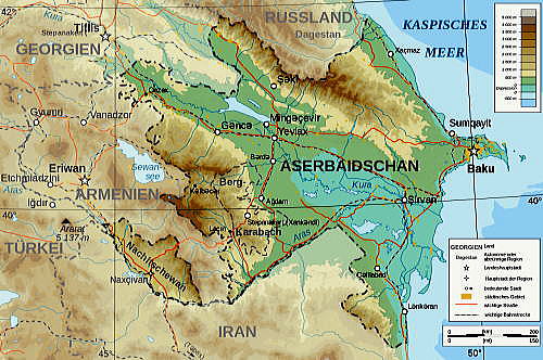 | 総合メニュー(西アジア) アゼルバイジャン1 アゼルバイジャン2 アゼルバイジャン3 アゼルバイジャン4 世界遺産1 世界遺産2 次はアゼルバイジャン2す。 ◆アゼルバイジャン2 地理 ![]() アゼルバイジャンの地図 Source:Wikimedia Cmmons ![]() 地形図 Source:Wikimedia Cmmons 停戦後の境界。「ナゴルノ・カラバフ共和国」はアゼルバイジャンの領土の約9%を実効支配しており、旧自治州の領域を越えてアルメニアと境界を接しています。 ![]() 最高峰バザルドュズ山 Source:Wikimedia Cmmons カスピ海の西岸に位置し、北はロシア、南はイランに挟まれていまる。南北400km、東西500kmに及ぶ。地形上、カスピ海・大コーカサス山脈・中央平原に3区分できます。 すべての河川がカスピ海に注ぎ、最長はKur川の1515kmです。最高地点はバザルドュズ山 (海抜4466m) です。南にアゼルバイジャンの飛地である自治共和国ナヒチェヴァン自治共和国があります。領土内にアゼリー人居住地に囲まれているもののアルメニア人人口の多いナゴルノ・カラバフ地方があります。 紛争 ナゴルノ・カラバフ地方ではアルメニア人の人口が多く、同地域のアルメニアへの帰属変更を掲げたことでアゼルバイジャンと分裂状態となり、ソビエト解体から1994年に停戦合意をするまで紛争地域となっていました。 停戦合意後も2014年に衝突が起き不安定な状態を抱えていましたが、2016年4月2日、ナゴルノ・カラバフ自治州でアゼルバイジャンとアルメニア軍による軍事衝突が発生しています。戦闘は翌3日も続き、双方で兵士が死亡しています。この戦闘でアゼルバイジャンは初めて勝利し「八つの丘を含む200ヘクタール」を奪還しました。 経済 IMFの統計によると、2015年のアゼルバイジャンのGDPは540億ドルである。一人当たりのGDPは5,739ドルです。通貨マナトが対米ドルで急落しており]、年を追うごとに数値は低くなっています。 欧米の直接投資と原油高に伴う多額の収入が国内の経済を急速な勢いで成長させていますが、一方で激しいインフレと失業率に悩まされています。また、環境汚染も深刻です。 国内の労働市場は経済状況に比べれば不安定でIDP(国内避難民)も多く抱える同国の国民生活は決して経済成長率を反映しているとは受け取れません。 世界銀行のDoing Businessレポート2019によると、アゼルバイジャンの「ビジネス環境ランキング」順位は57から25に向上しました。 エネルギー ![]() バクー油田 Source:Wikimedia Cmmons バクー油田など豊富な天然資源があり、ソ連崩壊やアルメニアとの紛争で落ち込んだ経済を支えています。天然資源の存在は第二次世界大戦やチェチェン問題とアゼルバイジャンの関係とも大きくかかわっています。 2006年にはアゼルバイジャンの首都バクー、ジョージアのトビリシ、トルコのジェイハンを結ぶBTCパイプラインが開通しました。同パイプラインはBPなどの日欧米企業が出資、輸送能力日量100万バレルの原油パイプラインです。これはロシアに対抗する欧州向け原油輸出パイプラインとして期待され、カザフスタン原油の輸出も計画されています。カスピ海では油田のほかにガス田も生産を始めています。 農業 2007年時点のアゼルバイジャンの国土の約54.9パーセントは農地となっています。 観光 ![]() シャダ・マウンテン・リゾート Source:Wikimedia Cmmons 1990年代のソビエト連邦の崩壊とナゴルノ・カラバフ戦争によって、観光産業とアゼルバイジャンの観光地としてのイメージは低下しました。 2000年代以降は政府が観光を重視しており、世界経済フォーラムのTravel and Tourism Competitiveness Report 2015によると、アゼルバイジャンは世界で84位につけています。また、世界旅行観光評議会の報告によると、アゼルバイジャンは2010年から2016年の間で観光客が最も伸びている上位10カ国のうちの1つとなり、2017年の指標では旅行と観光の経済が最も急速に発展している国の中で第1位(46.1%)となっています。 交通 シルクロードや南北輸送回廊などの主要な国際交通動脈の交差点にあるアゼルバイジャンの地理的要因は、国家経済にとって交通が戦略的に重要であることを示しています。 2010年時点で、広域鉄道と電化鉄道がそれぞれ延べ2,918 km(1,813 mi)と1,278 km(794 mi)あり、35の空港と1のヘリポートがあります。 アゼルバイジャンのフラッグキャリアは首都バクーにある国際空港ヘイダル・アリエフ国際空港を拠点ハブとするアゼルバイジャン航空です。 科学技術 21世紀には、Elchin Khalilovらの基本的な研究に触発された数多くの著名なアゼルバイジャンの地球力学とジオテクトニクスの科学者が、共和党の地震動の中心地の大部分を占める何百もの地震予知ステーションと耐震建物を設計しました。泥火山の活動を監視することで地震予知を試みています。 国民 民族構成(アゼルバイジャン) Source:Wikipedia 民族 住民は、民族的にはテュルク系のアゼルバイジャン人(アゼリー人)が人口の91.6%を占め、圧倒的に多い。アゼリー人の外、レズギン人(2.0%)、ロシア人(1.3%)[24]、アルメニア人