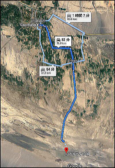 | 総合メニュー(西域) アスタナ古墳1 視察1 視察2 アイディン湖 本稿の解説文は、現地調査や現地入手資料、パンフなどに基づく解説に加え、百度百科中国版から日本への翻訳、Wikipedia 日本語版を使用しています。また写真は現地撮影以外に百度百科、Wikimedlia Commons、トリップアドバイザーさらに地図はグーグルマップ、グーグルストリートビュー、百度地図などを使用しています。その他の引用に際しては、その都度引用名を記しています 次は、新疆ウイグル自治区のトルファン・アイディン湖です。 ◆アイディン湖(中国新疆ウイグル自治区トルファン) 以下はトルファン市郊外のアイディン湖( Ayding Lake)のルートと時間です。距離は37~38km、時間は最大1時間です。 ![]() トルファン市郊外のアイディン湖( Ayding Lake) グーグルマップ ![]() トルファン・アイディン湖( Ayding Lake) グーグルマップ