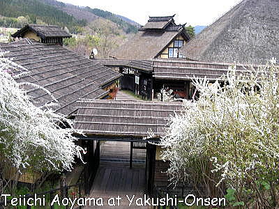 長野原町一帯にある八ッ場ダムの工事現場を後に、18日の午後、私達は下の地図にあるように、長野原町の南東に位置する東吾妻町の薬師温泉にある「かやぶきの郷」(下の地図中、一番下)に向かった。 ![]() かやぶきの郷の位置 出典:マピオン ●かやぶきの郷 下は「かやぶきの郷」の入り口である。まさに中山間地の中にある! ![]() 撮影:青山貞一、Nikon Cool Pix S10 かやぶきの郷には、信州、上州、東北地方の中山間地にあったかやぶきの家を移築している。かやぶきの郷の大きな特徴は、江戸時代の上州、信州、岩手県など東北地方の中山間地の農家、民家を今に伝えるだけでなく、近くにある薬師温泉の源泉を引き込み、いくつもの源泉掛け流しの温泉が楽しめるようにしていることである。 ![]() 滝見の露天風呂(自噴天然温泉) 出典:パンフレットより その意味では、まったく新たな歴史と文化を伝承するテーマパークであると言っても良いだろう! 下の写真はかやぶきの郷の全景である。 ![]() かやぶきの郷の全体イラスト 出典:パンフより 下はかやぶきの家のひとつ、南部曲り屋(木村家)の概要である。 ![]() 南部曲がり屋 木村家の解説板 撮影:青山貞一、Nikon Cool Pix S10 ![]() 撮影:青山貞一、Nikon Cool Pix S10 春に来るとかやぶきの郷は、桜が満開。すばらしい景観が楽しめる!