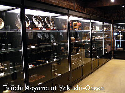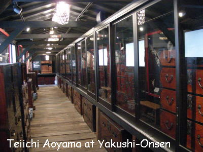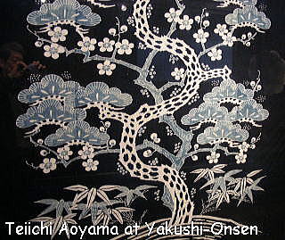 ところで、薬師温泉・かやぶきの郷では江戸時代の民具、衣装なども必見だ。「紺屋の白袴」という言うことわざがあるが、その紺屋が染めた秀逸な染め物も見物のひとつ。 以下は2010年のゴールデンウィーク来訪時に撮影した写真である。いずれも日本の中山間地の農家の文物を今に伝える貴重なものばかりである。
