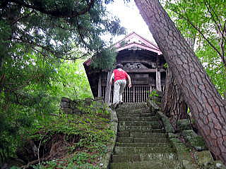 ところで、赤岩神社に参拝にゆくのなら、何もそんな大仰に深くに考えず行けばいいじゃないかと思うだろう。だが、「赤岩神社」は、非常に険しい山の崖の上にあって、健康そして健脚のひとでも、そう簡単にたどりつけないのである。 車が通れる赤岩村落の道から最上段の本殿までは、おそらく標高で100m弱ある。 しかも途中、何カ所かある別々の石の階段は、いずれもステップが狭い。その石のステップもボロボロで朽ち果てている。 いつ何時崩れ落ちるか分からない。 さらにがけの上にある神社の上に本殿があり、そこに行く階段も林道も何もない。そんながけを登らないとお参りする本殿にはたどり着けないのである。 今回、青山は下の写真にある入り口の数段の石段で滑り、危うく頭を打つところであった。前日夜からの降雨でコケが湿っていたところに、いきなり登山靴が斜めに入ったためだろう。 ![]() 最初に石段に上る池田さん。青山はここで転けてしまった(笑い) 撮影:青山貞一 Nikon CoolPix S8 上から見ると下の写真のようになる。 ![]() メインストリートから階段を20段ほどあがったところ 撮影:青山貞一 Nikon CoolPix S8 ![]() 道路から数段上がった神社参道の入り口 左は奈須さん 撮影:鷹取敦 Digital Camera Casio ![]() 坂道を登る途中の左右に灯籠がある 撮影:青山貞一 Nikon CoolPix S8 ![]() この後、写真のような林道のような参道をかなり登る 撮影:青山貞一 Nikon CoolPix S8 ![]() 途中にあった井戸にて 撮影:青山貞一 Nikon CoolPix S8 ![]() 参道を行くとはじめて本格的な石段がある。 撮影:青山貞一 Nikon CoolPix S8 さらに行くと、下の写真にあるような崩れ落ちそうな石段が続く。 ![]() 石灯籠からさらに崩れかかった石段が40−50段続く 撮影:池田こみち Nikon CoolPix S10 ![]() 撮影:青山貞一 Nikon CoolPix S8 下の写真は上の階段を上ったところから下をみたところである。 ![]() 登る途中から下を見たところ 撮影:青山貞一 Nikon CoolPix S8 やっと神社の拝殿に到着。 ![]() 赤岩神社の拝殿。 木造で相当の年数がが経っている 撮影:青山貞一 Nikon CoolPix S8 拝殿まで登ると、結構疲れる。 ![]() 撮影:鷹取敦 グロッキーの青山! ![]() 撮影:池田こみち Nikon CoolPix S10 この後、拝殿の背後にある本殿に登る! ![]() 拝殿の後にある上の写真の階段は途中で無くなっていて、 上の写真から上には登れない 撮影:青山貞一 Nikon CoolPix S8 下は本殿側から拝殿側を見た写真。拝殿と本殿の間は途中で階段がとぎれていて、遠回りして山を登ることになる。 ![]() これは本殿から下にある拝殿を写したもの 撮影:青山貞一 Nikon CoolPix S8 下の2枚の写真は2010年8月に来たときに配電から本殿に登ったときのもの。 ![]() 拝殿から脇の断崖を登った上で本殿に登る石段を登る 撮影:青山貞一 Nikon CoolPix S8 ![]() これが断崖絶壁の上にある本殿。ここでも参拝 撮影:青山貞一 Nikon CoolPix S8 2010年8月に来たときは、本殿のさらに上部への登山を試みた(下の写真2枚)しかし、このときは登山の準備をしてこなかったこともあり、途中で引き返した。地域の子ども達はこの上まで登っていた。 ![]() 池田さんは本殿からさらに上の崖への登山にトライした 撮影:青山貞一 Nikon CoolPix S8 ![]() 結局、危険なので折り返した 撮影:青山貞一 Nikon CoolPix S8 下の写真は本殿内部を写した写真である。 ![]() 本殿は入れない。本殿の外から写した内部 撮影:青山貞一 Nikon CoolPix S8 本殿で参拝する。 しかし、本殿から拝殿に降りるのも結構大変。慎重に! ![]() 撮影:池田こみち Nikon CoolPix S10 かくして、最初につまづいた私であったが、拝殿、本殿でお参りし全員無事に車がおいてある道路まで下山できた! ![]() 撮影:池田こみち Nikon CoolPix S10 つづく |