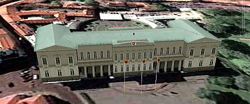 下は、大聖堂の南側にあるリトアニア大統領府の建物の3次元CG。